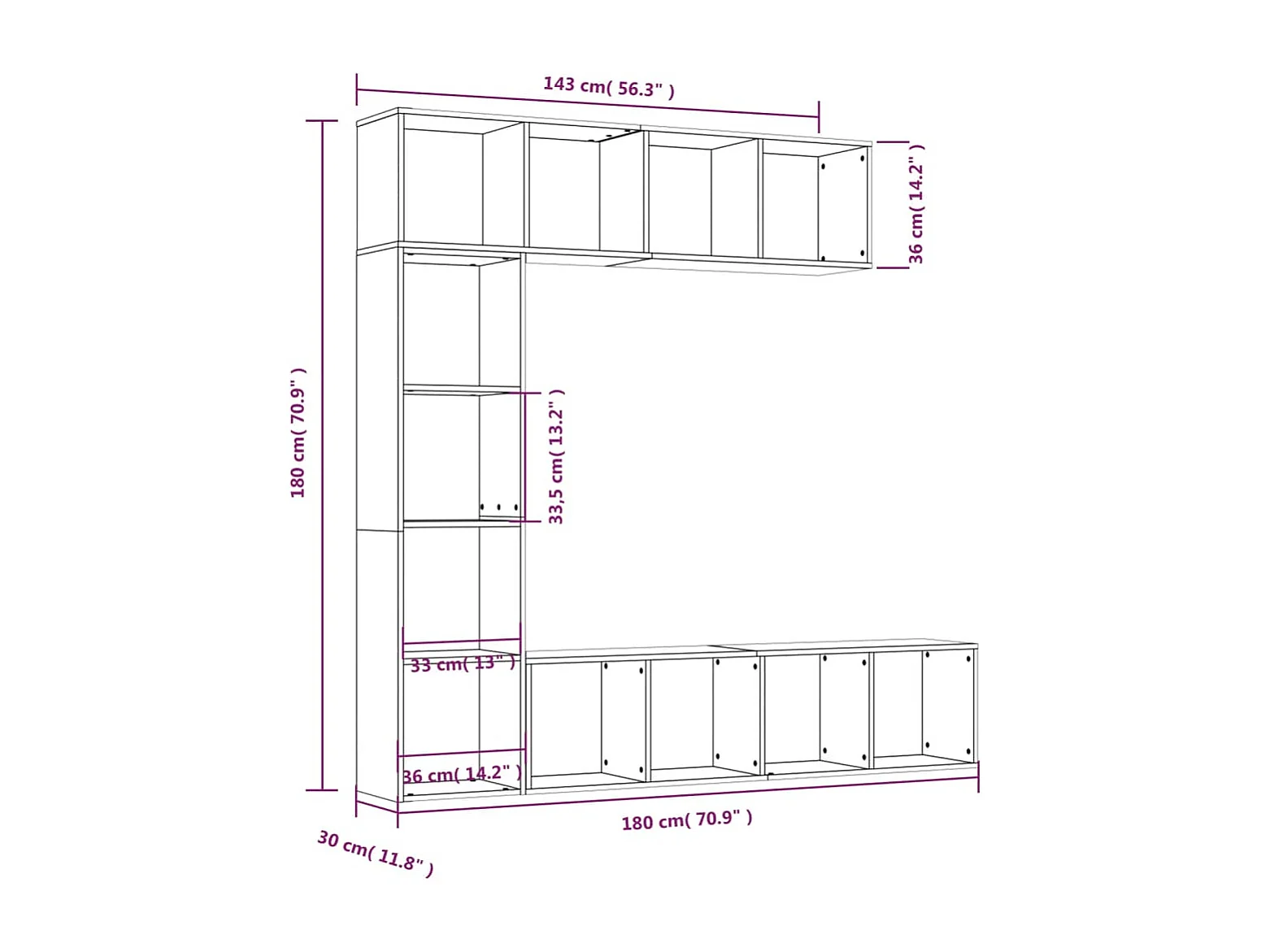 Ensemble bibliothèque/meuble TV 3 pcs Sonoma gris 180x30x180 cm