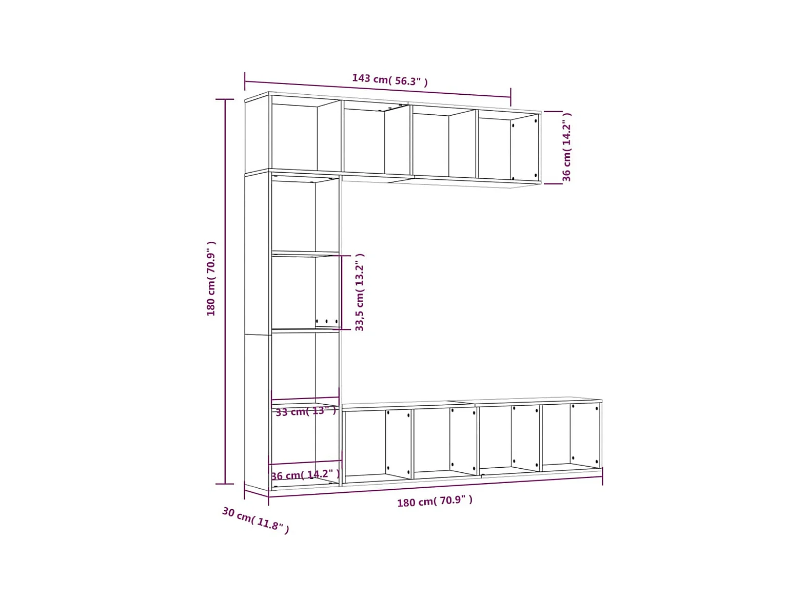 Ensemble bibliothèque/meuble TV 3 pièces Chêne fumé 180x30x180 cm