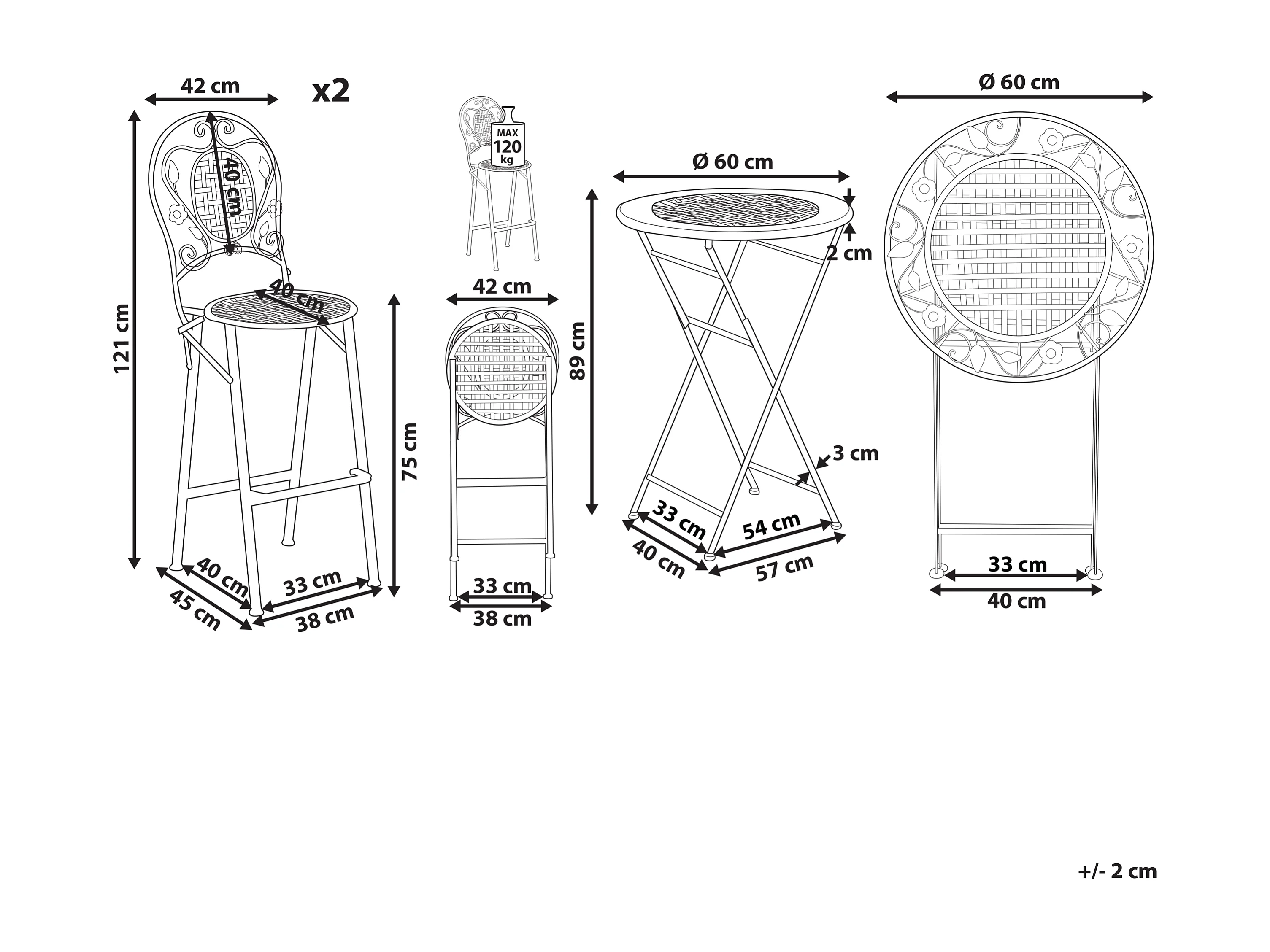 Ensemble bar de jardin Pliant BIVIO Métal Vert clair