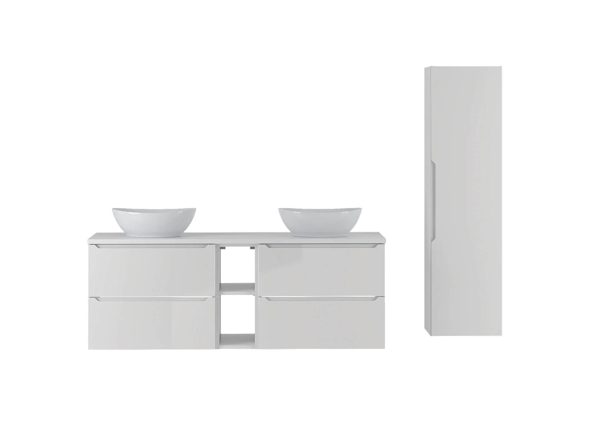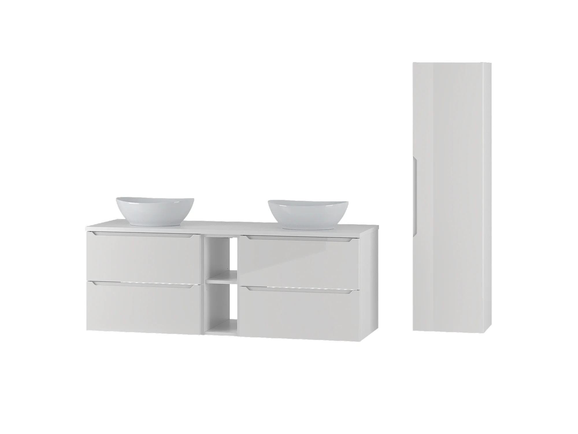 Ensemble blanc pour salle de bain 140 cm Armoire Étagère Plan de travail Lavabo Colonne Etna