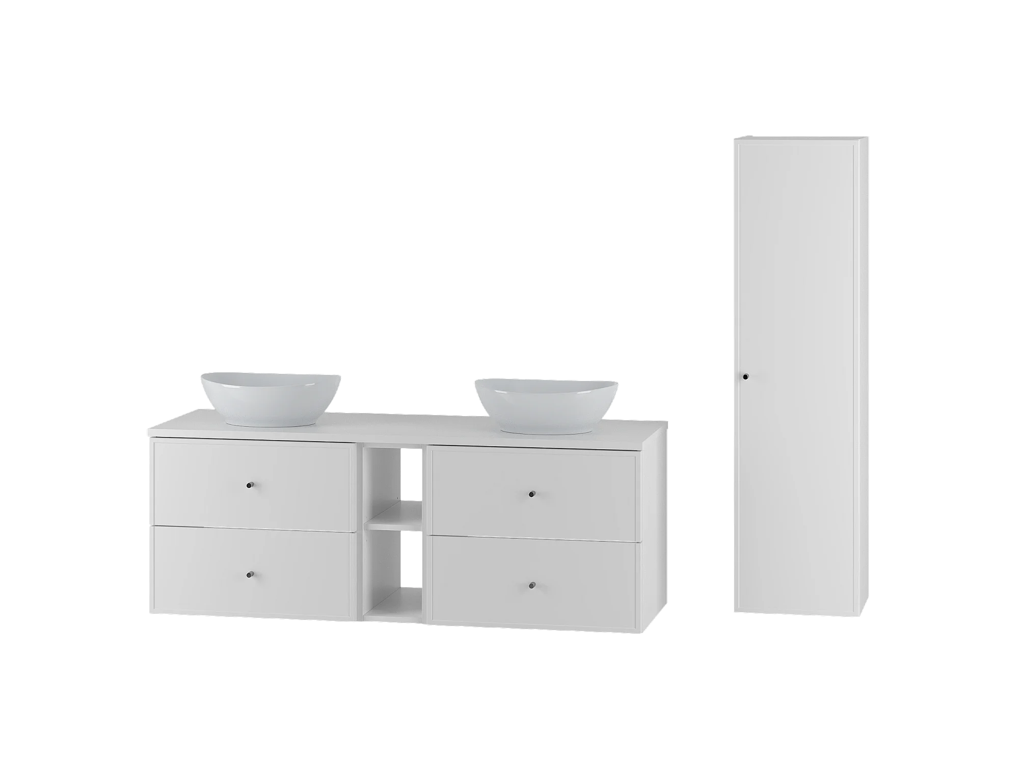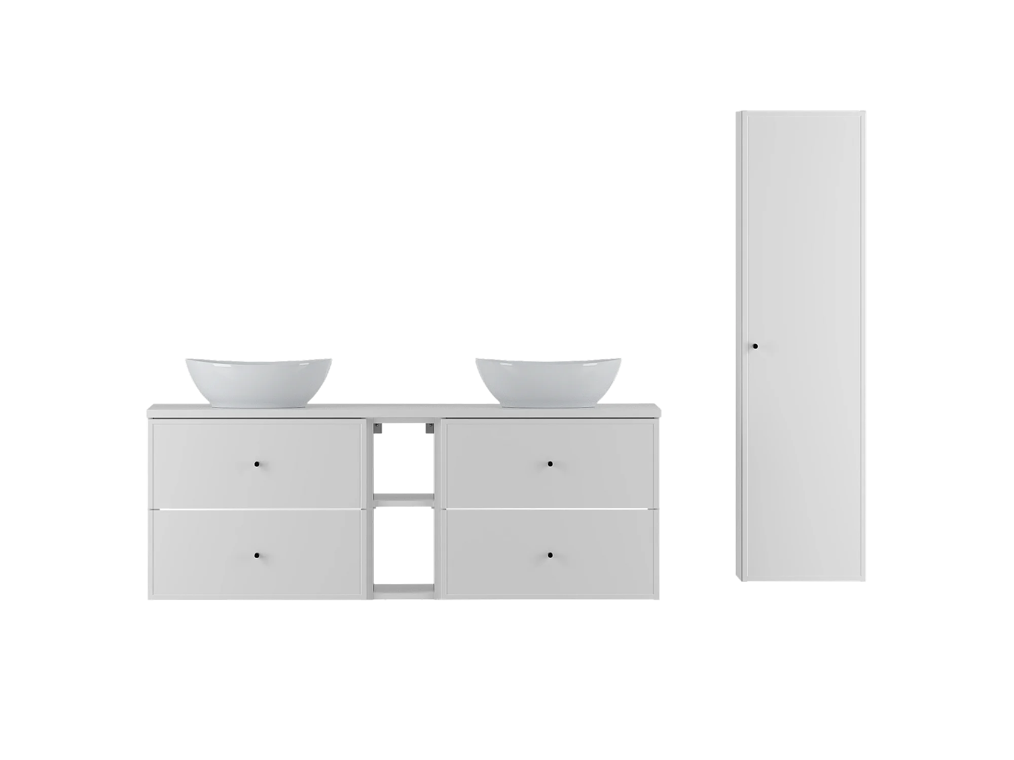 Ensemble blanc pour salle de bain 140 cm Armoire Étagère Plan de travail Lavabo Colonne Marco