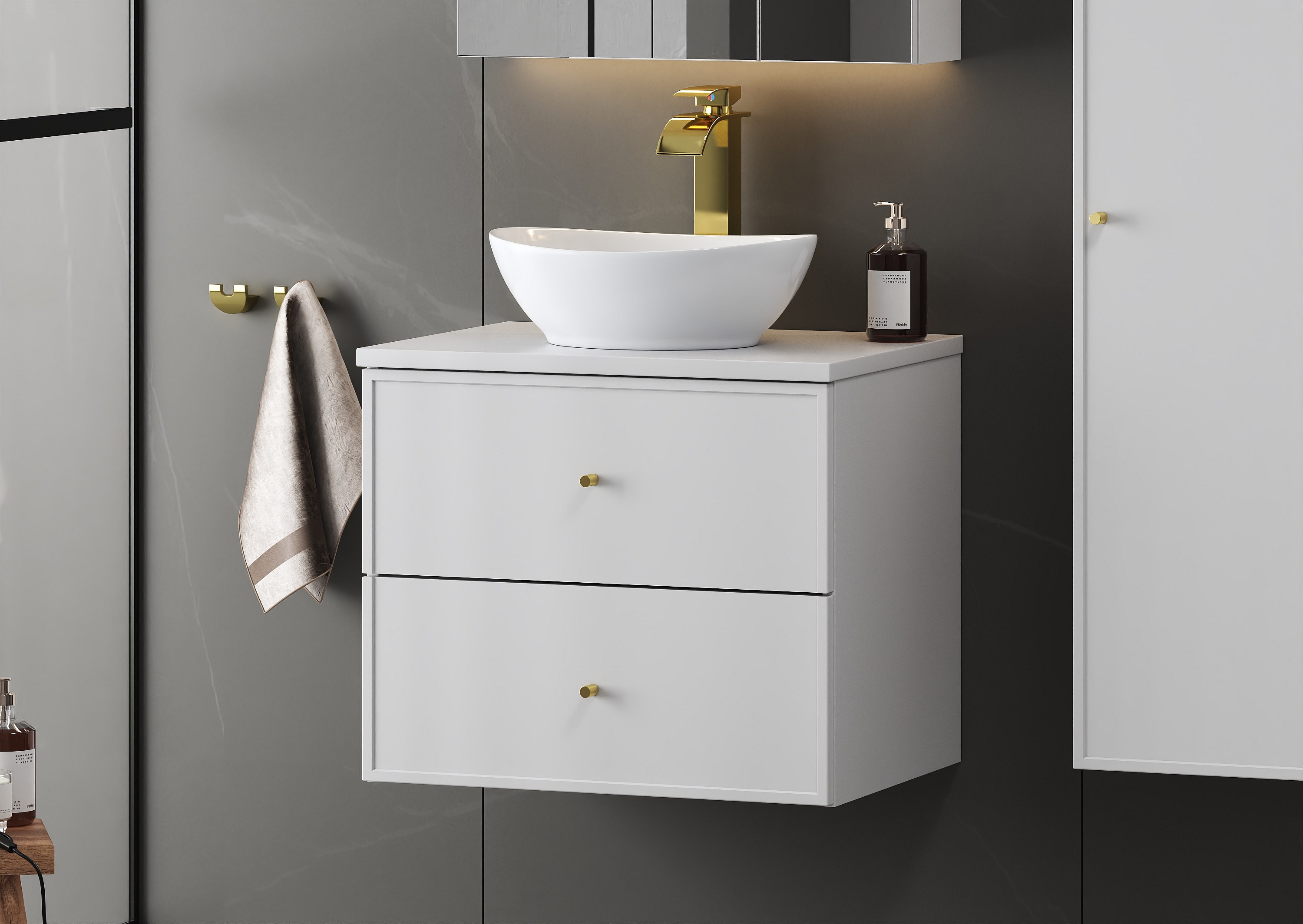 Ensemble blanc pour salle de bain 60 cm Armoire avec plateau Marco
