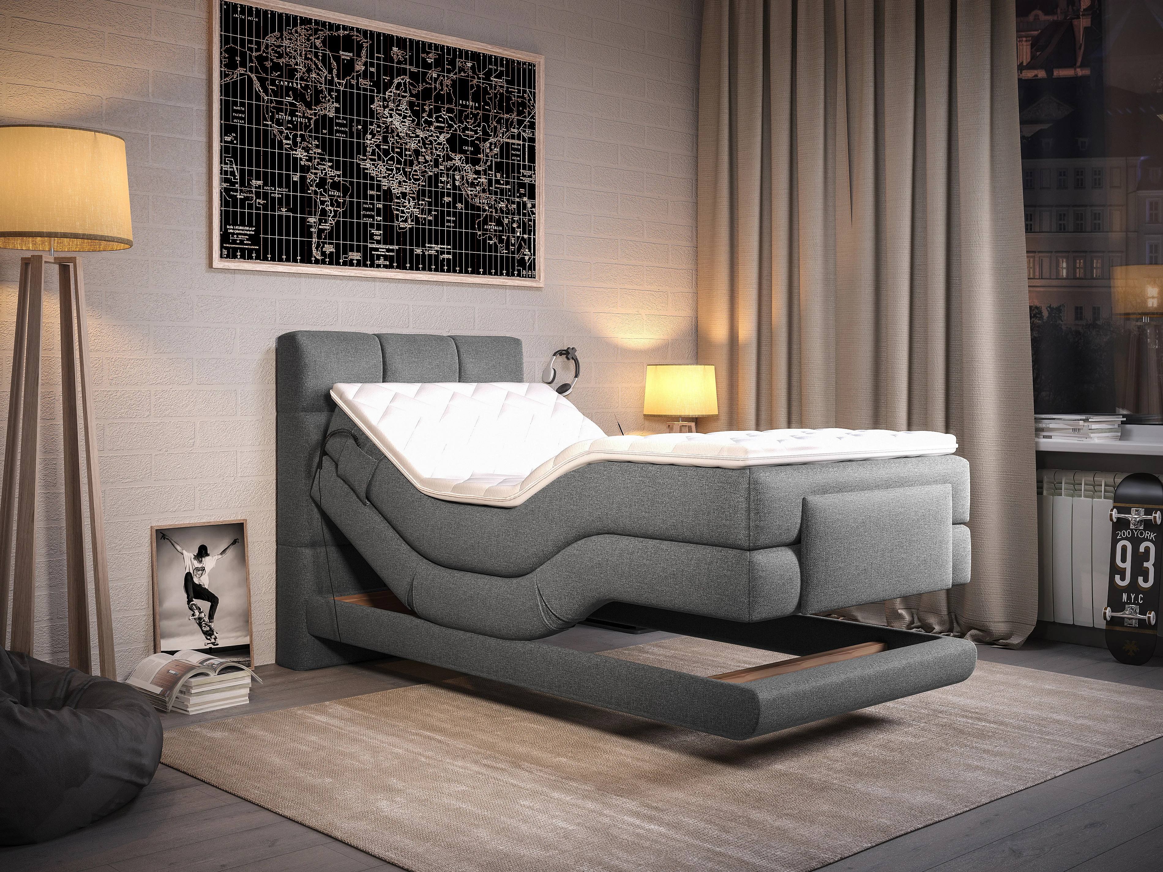 Ensemble complet boxspring tête de lit capitonnée + sommiers relaxation électrique + matelas + surmatelas - 100 x 200 cm - Tissu - Gris clair - LODI de PALACIO