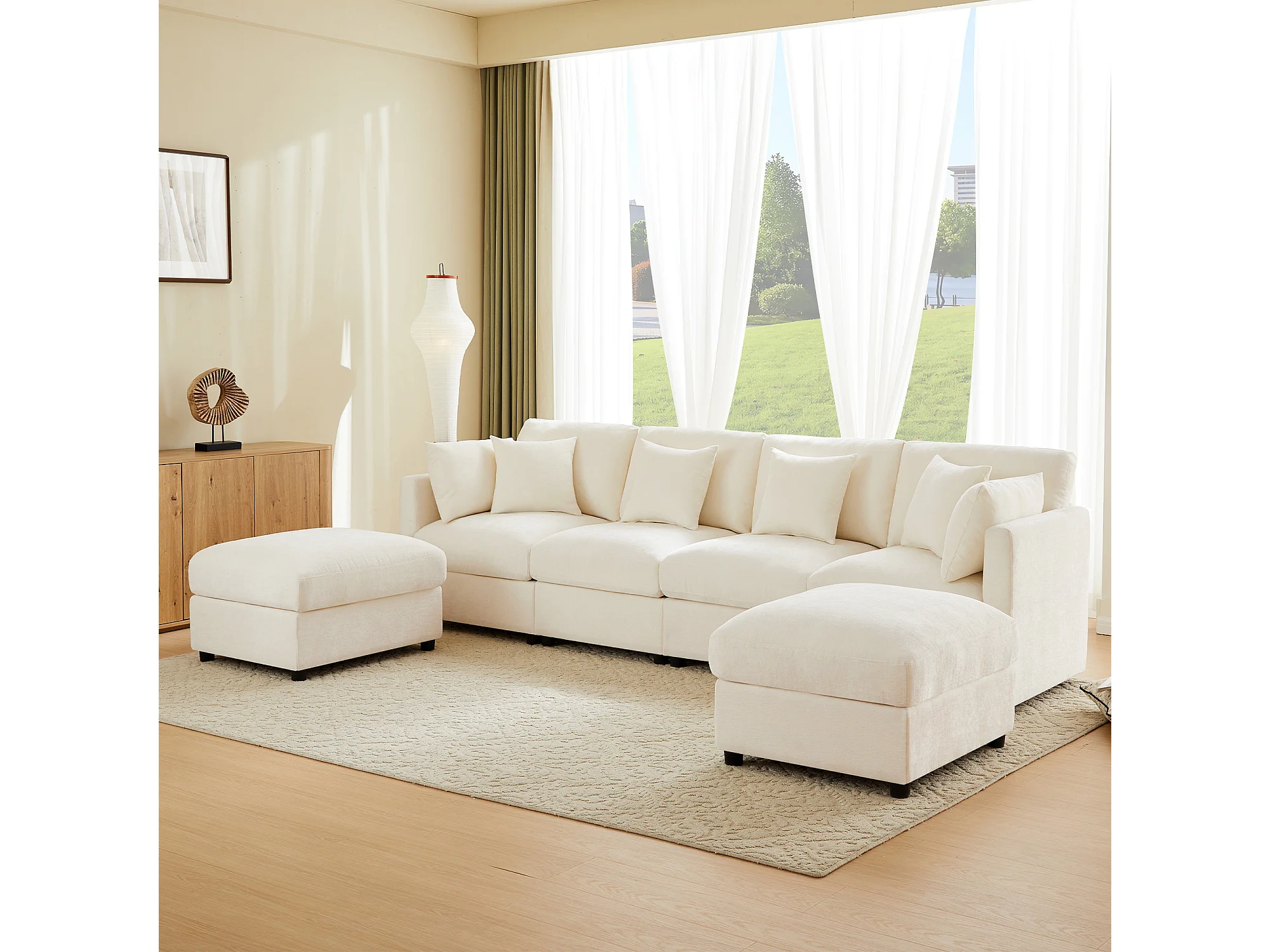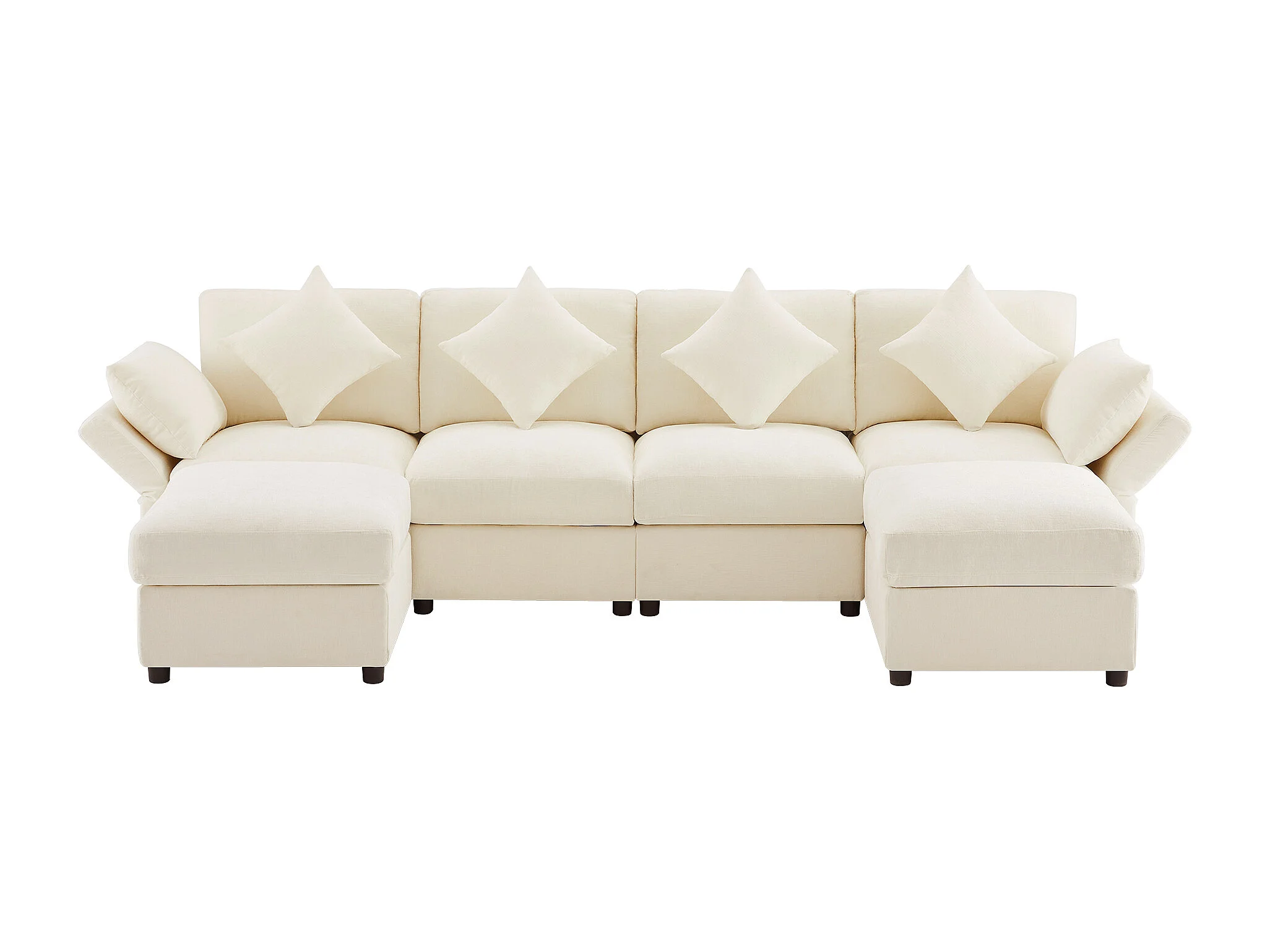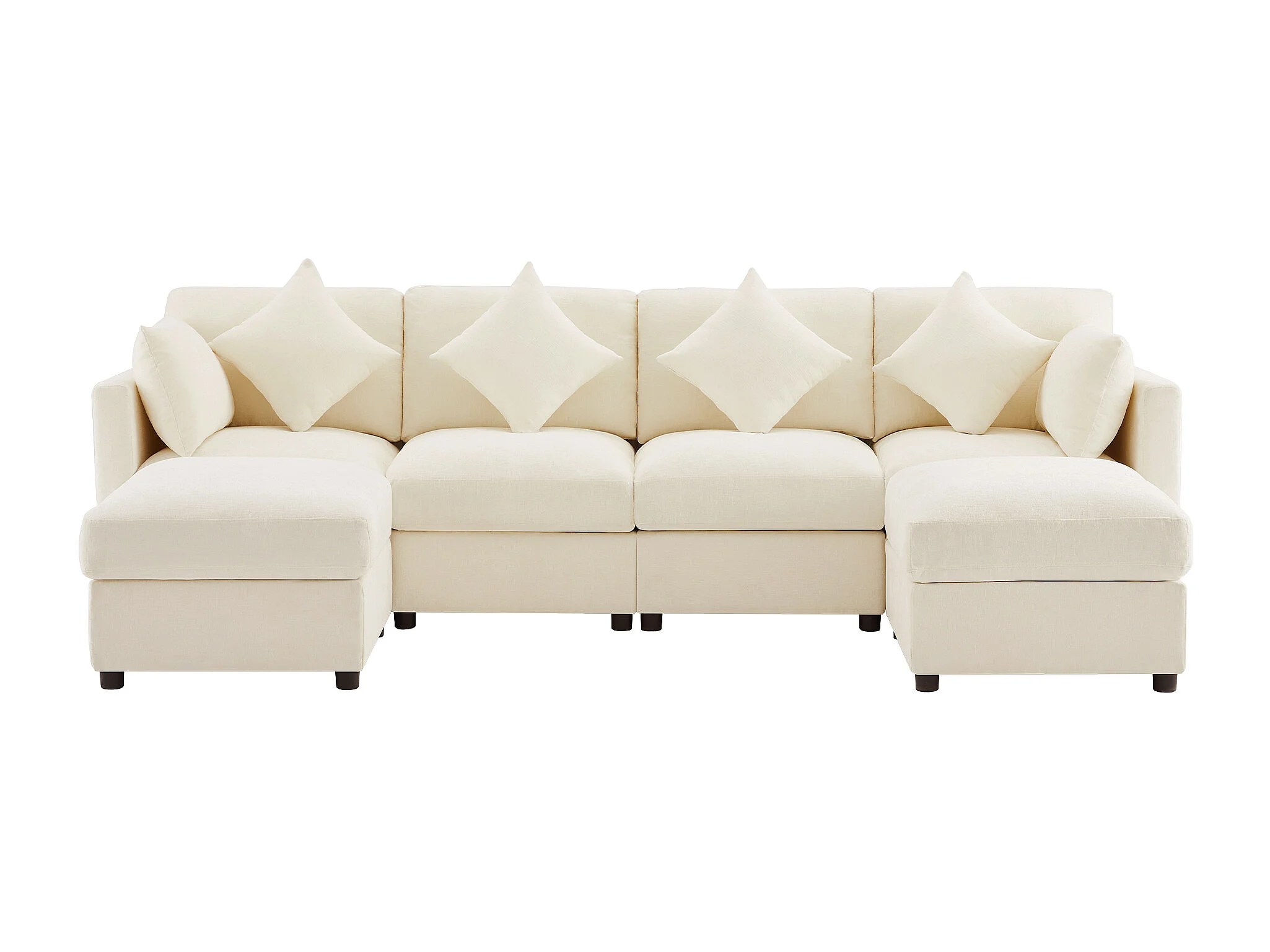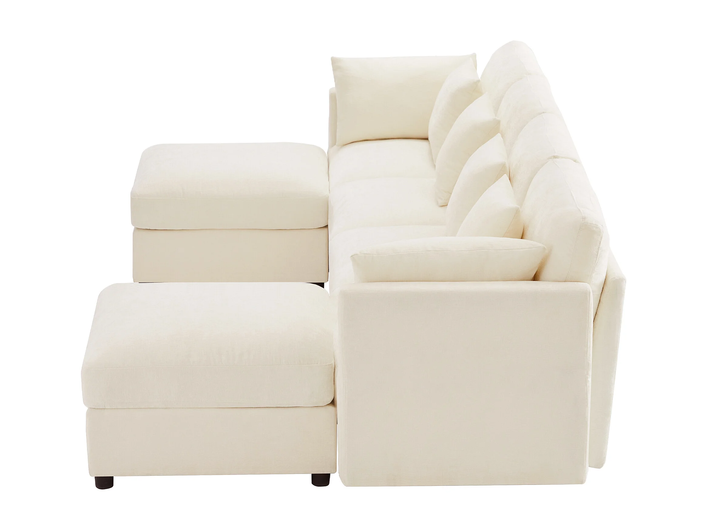 Ensemble canapé 6 places - 284 x 156.5 x 86 cm - avec 2 poufs + accoudoirs réglables + 4 coussins + 2 appuie-têtes - velours - beige