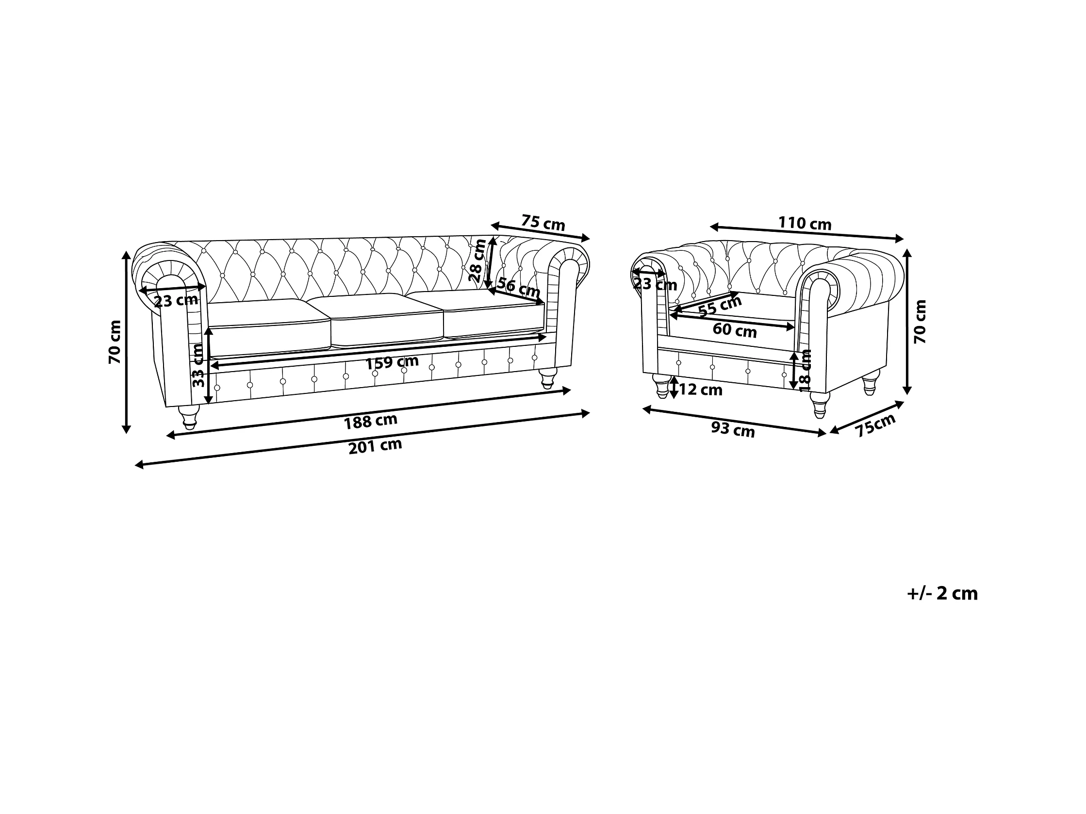 Ensemble de salon 4 places CHESTERFIELD Velours Bleu marine