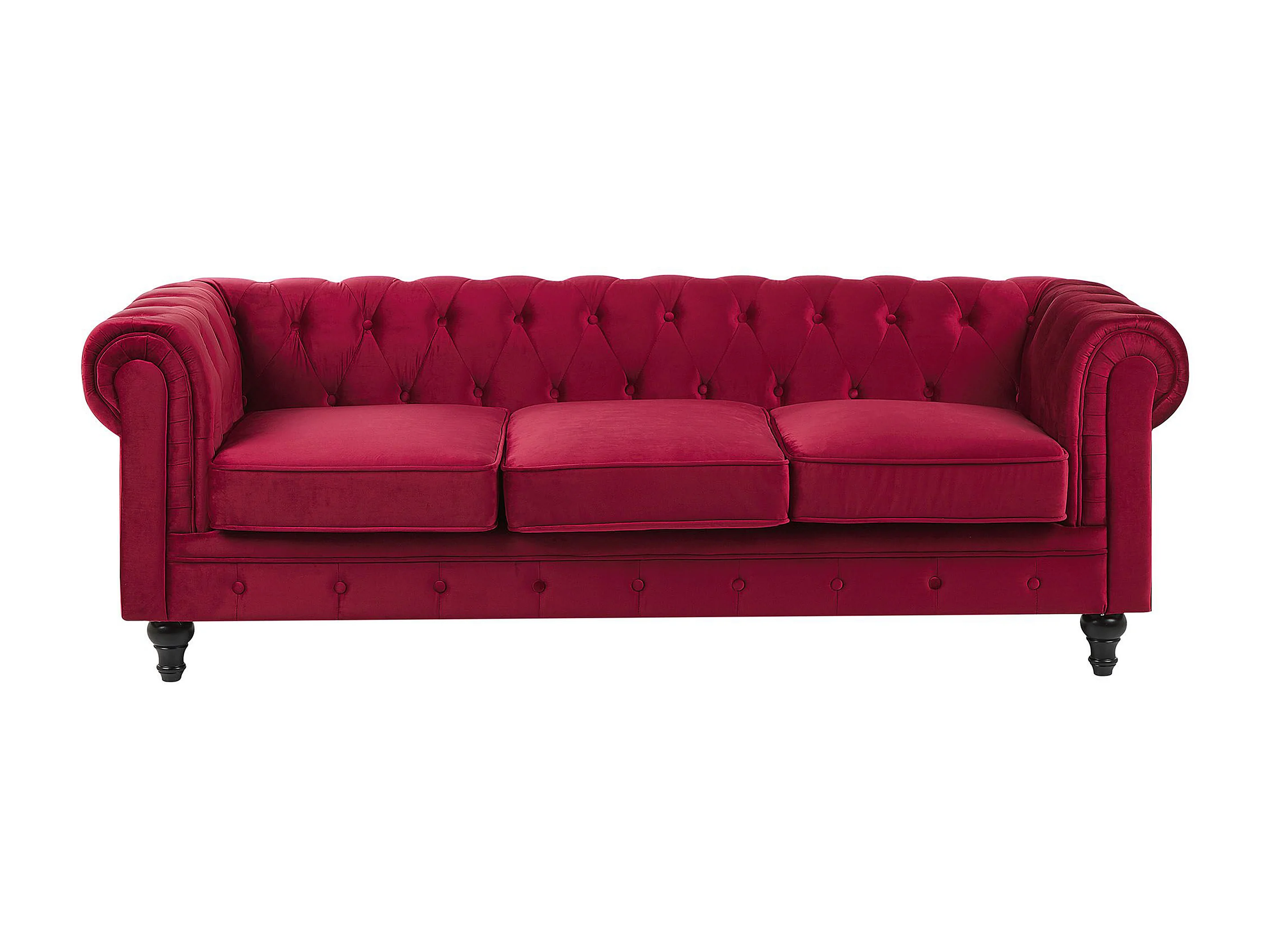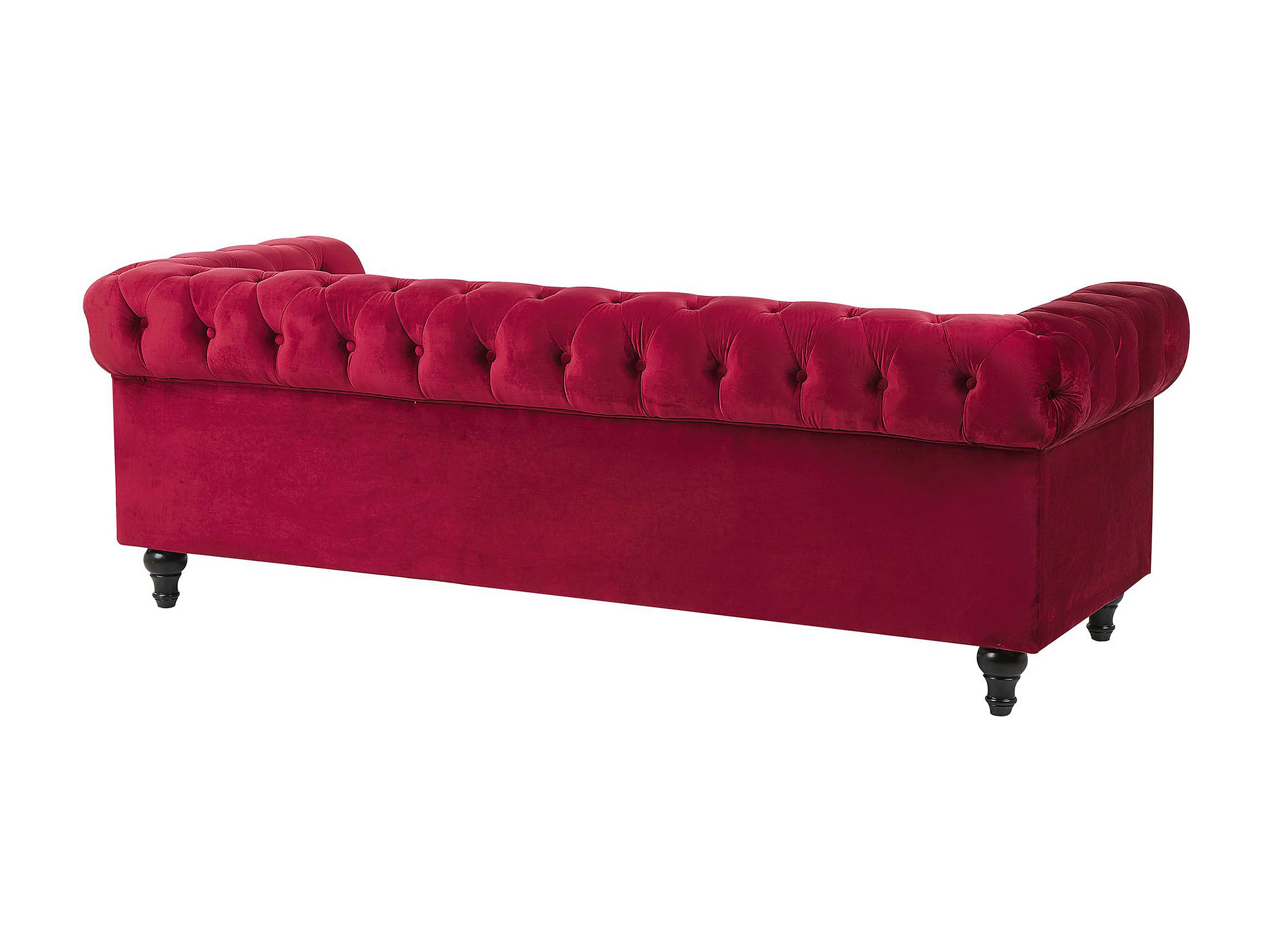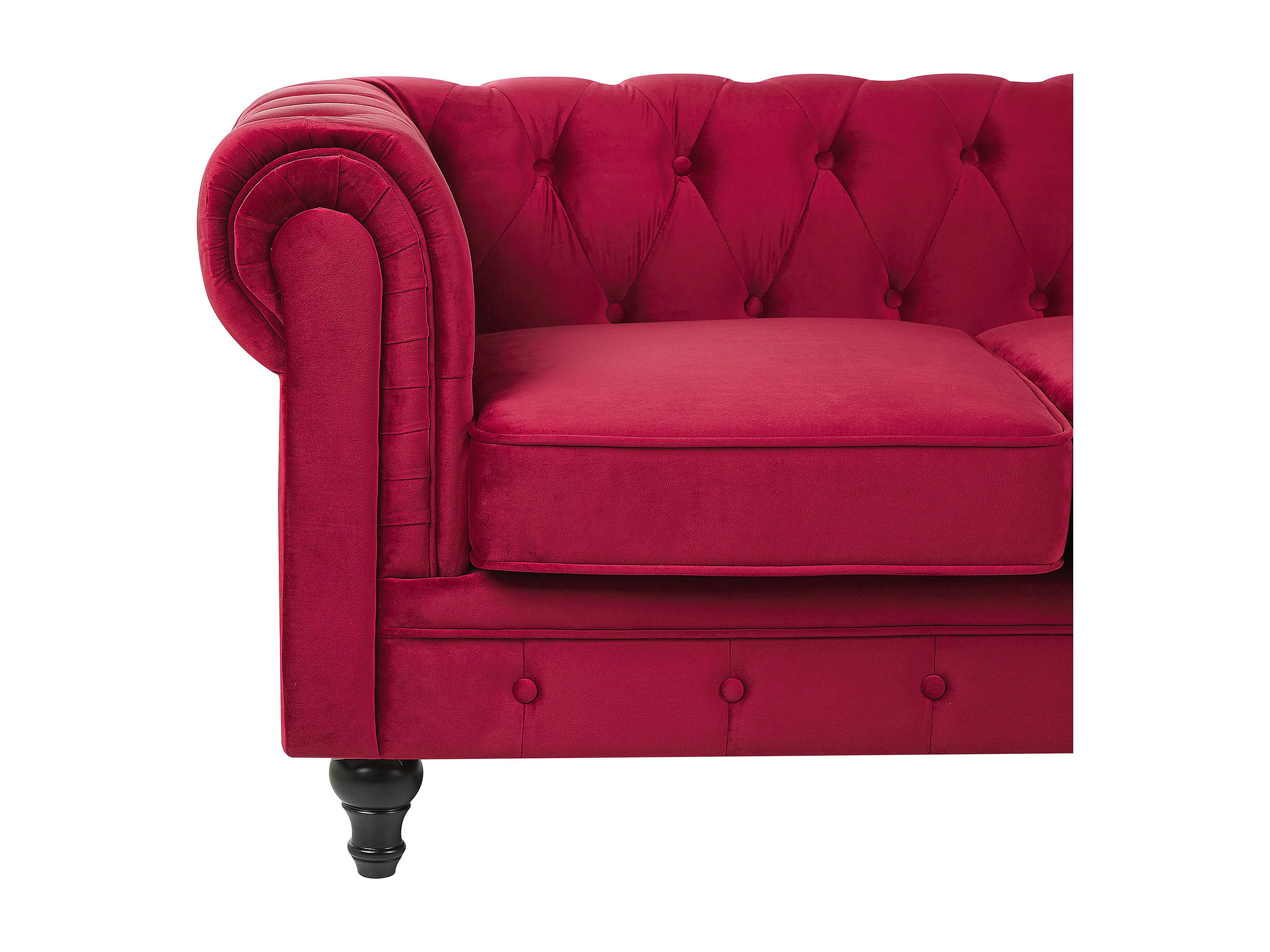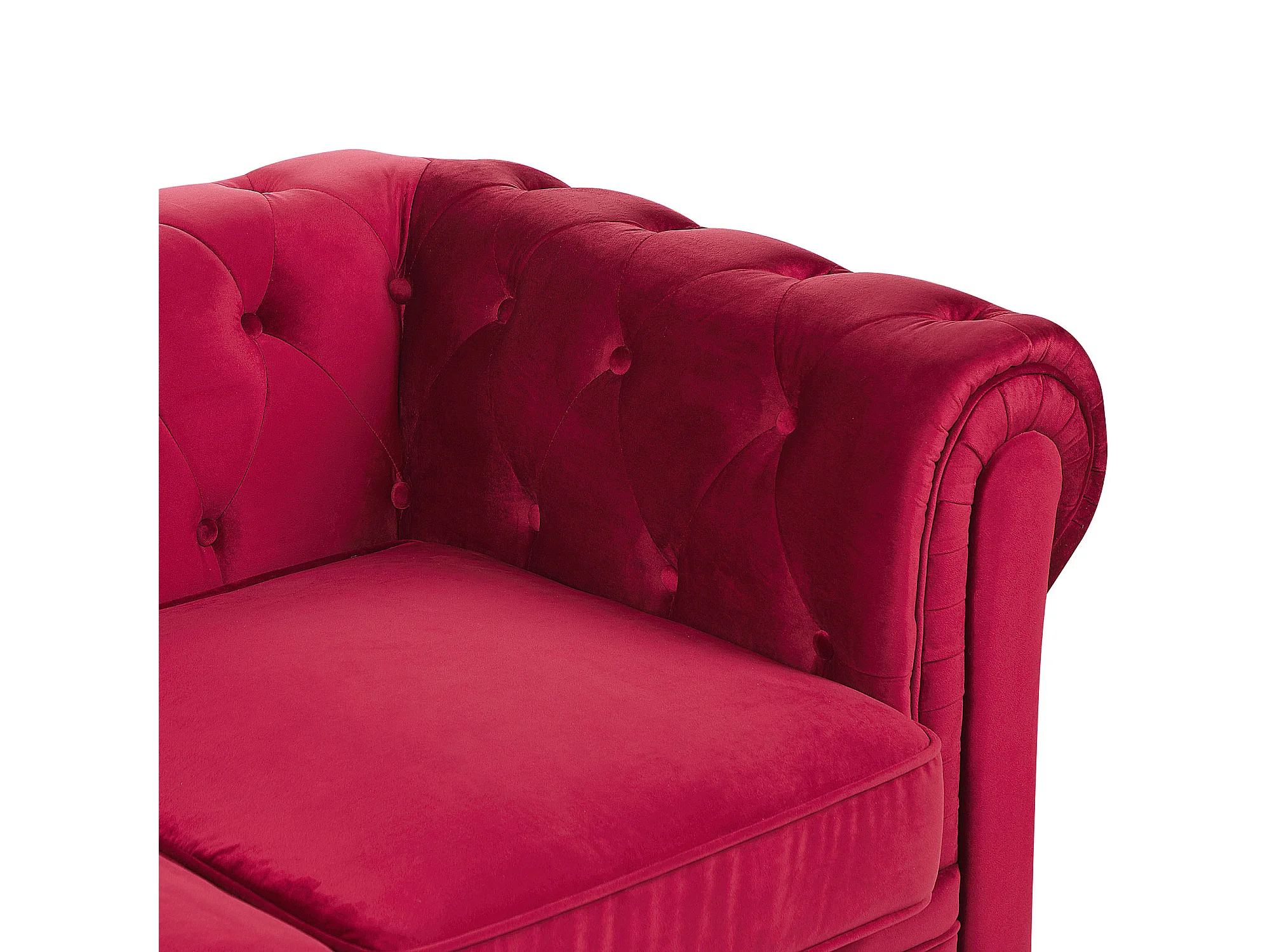 Ensemble de salon 4 places CHESTERFIELD Velours Rouge foncé