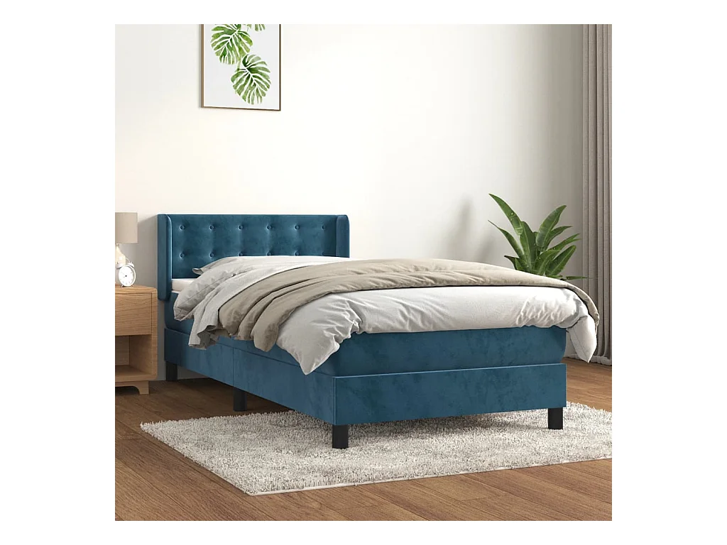 Ensemble complet boxspring - 80x200 cm + sommier tapissier + matelas Bleu foncé Velours SRGW98434