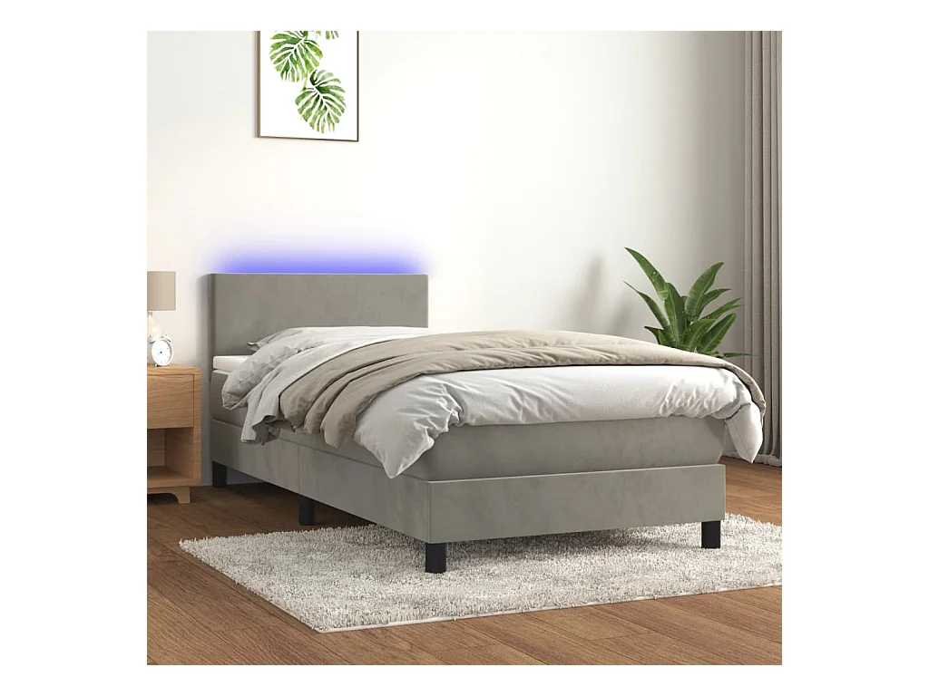 Ensemble complet boxspring + matelas et LED Gris clair 90x190cm FR42167