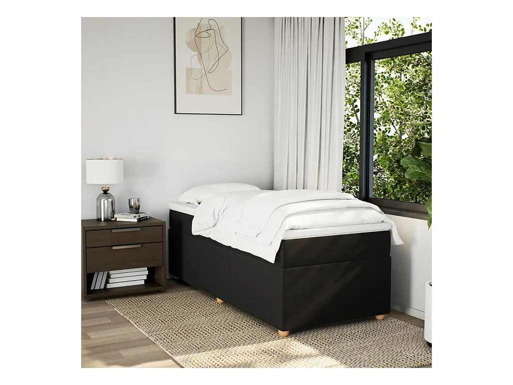 Ensemble complet boxspring + matelas Noir 90x200 cm Tissu FR14209