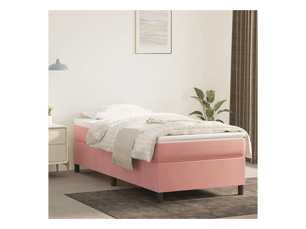 Ensemble complet boxspring + matelas Rose 80x200 cm Velours FR27072