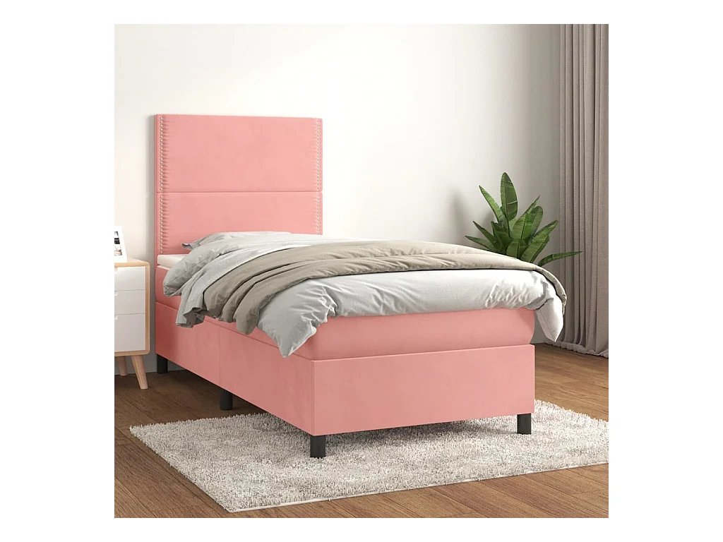 Ensemble complet boxspring + matelas Rose 80x200 cm Velours FR27072