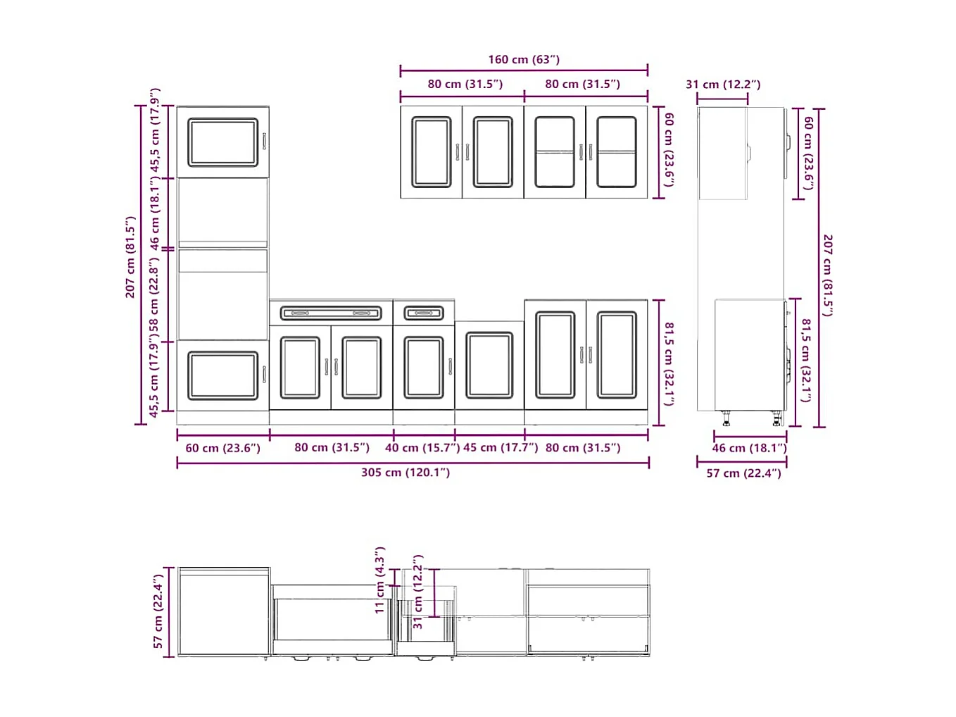 Ensemble d'armoires cuisine 7pcs Kalmar blanc bois d'ingénierie