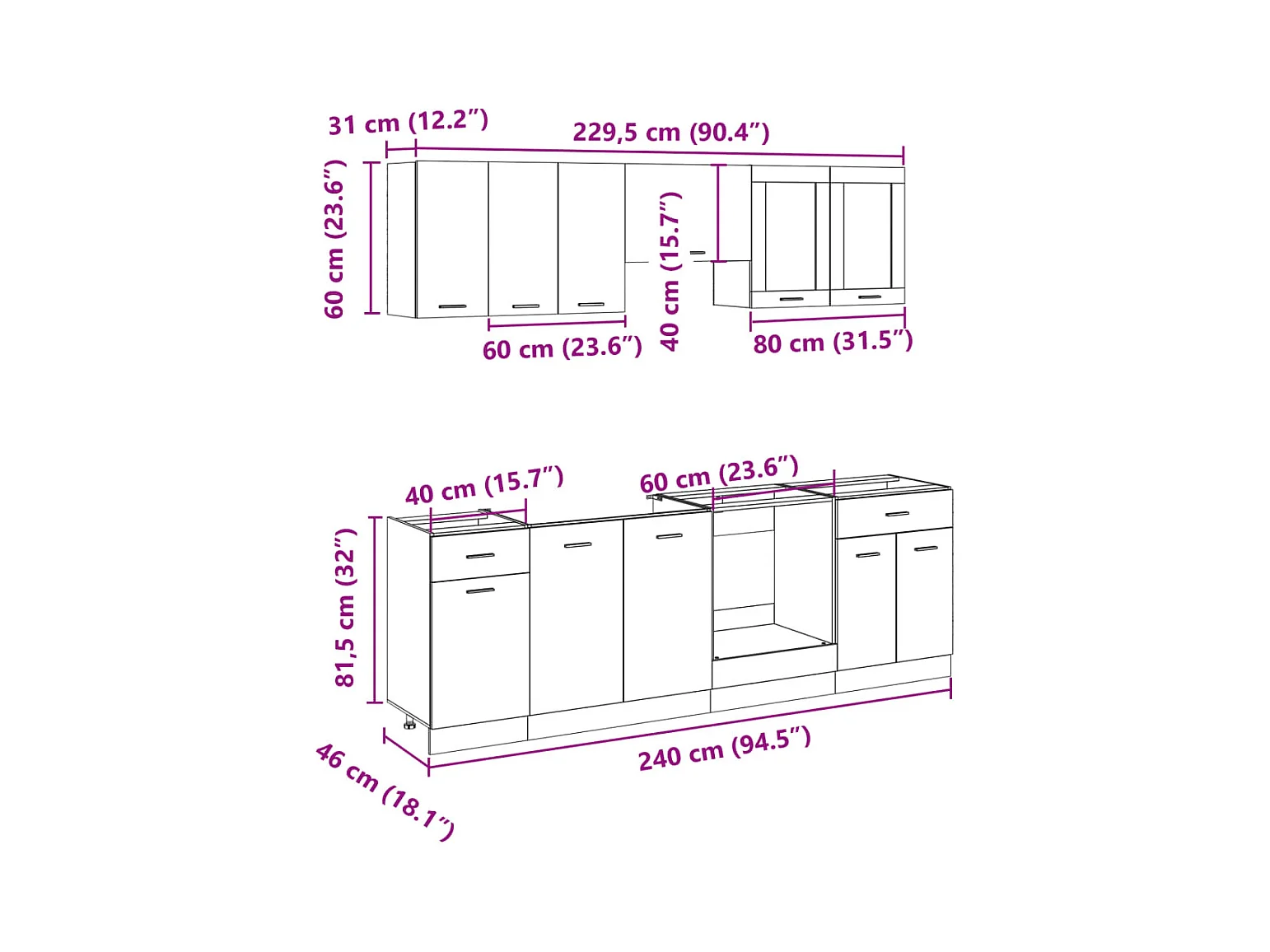 Ensemble de 8 meubles de cuisine "Lyon" en chêne Sonoma