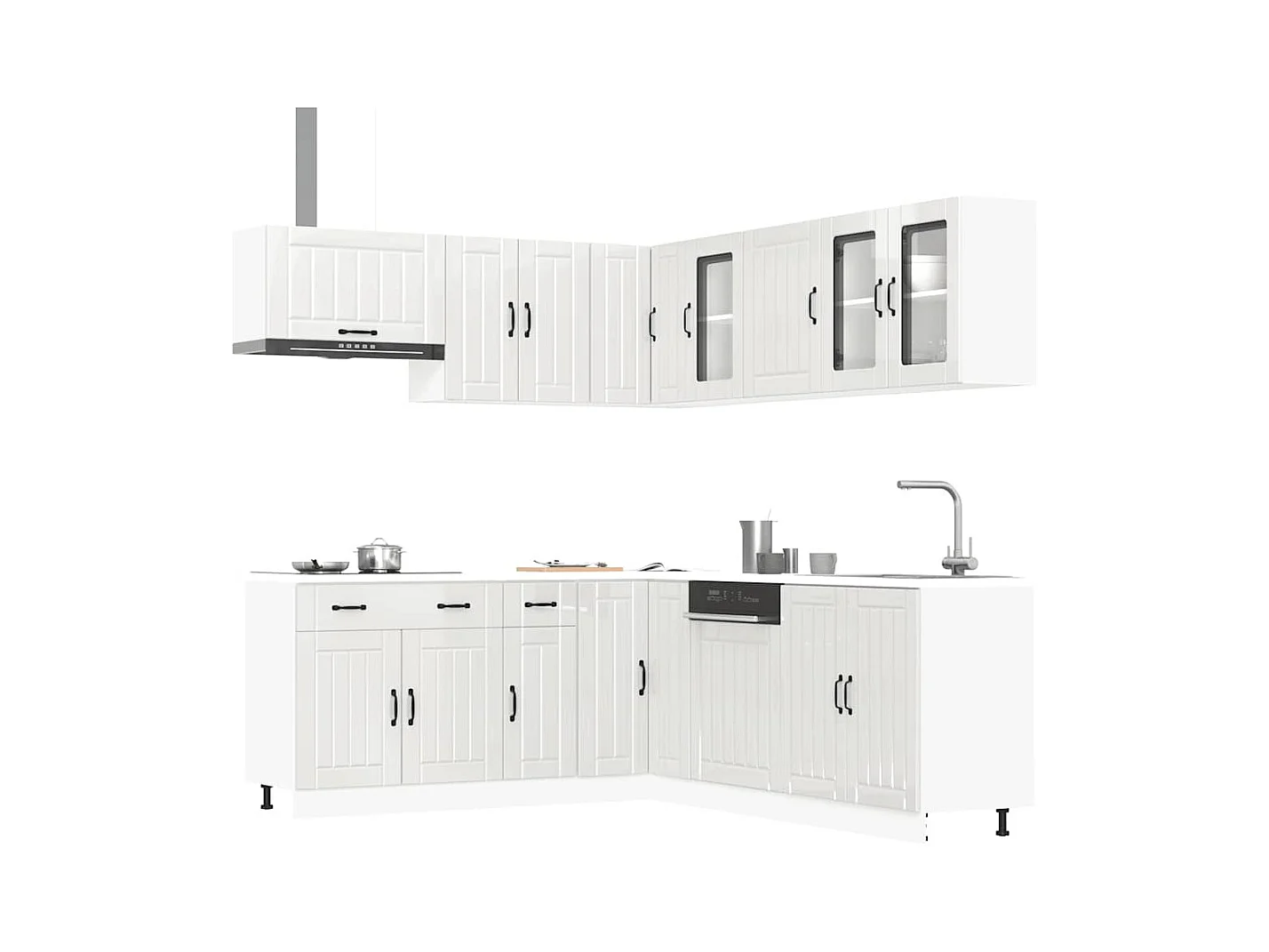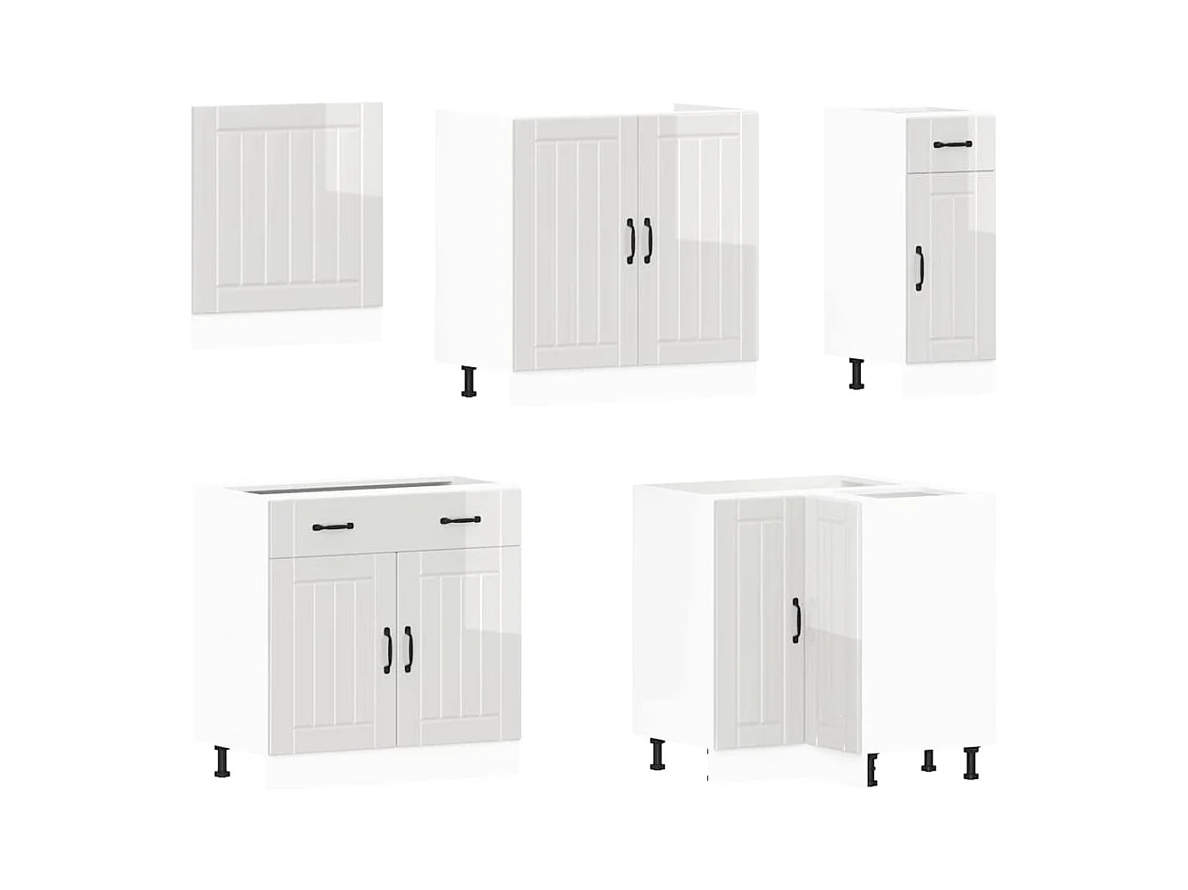 Ensemble de 7 meubles de cuisine "Lucca" en bois d'ingénierie blanc brillant