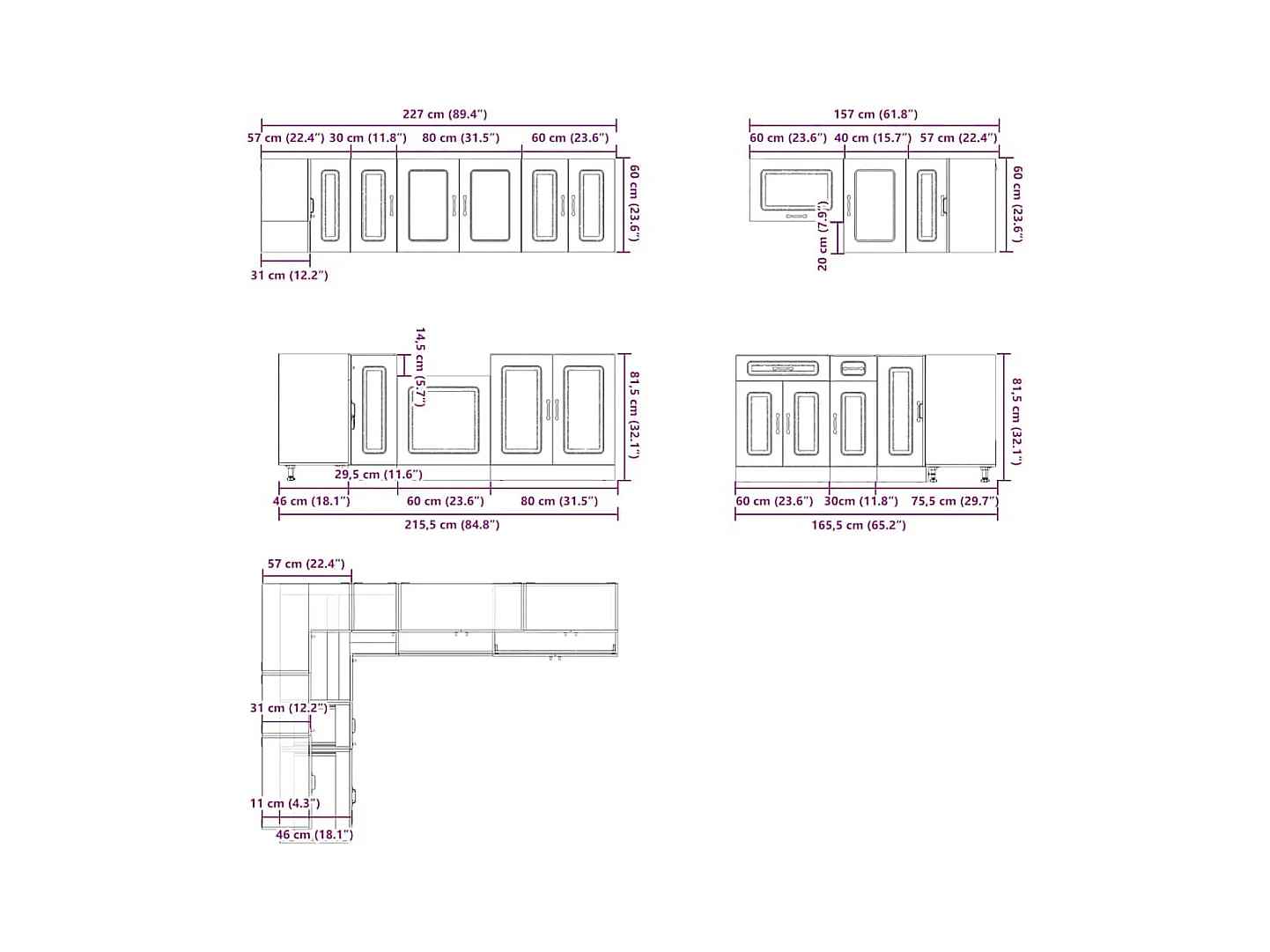 Ensemble de 8 meubles de cuisine "Porto" en bois d'ingénierie blanc
