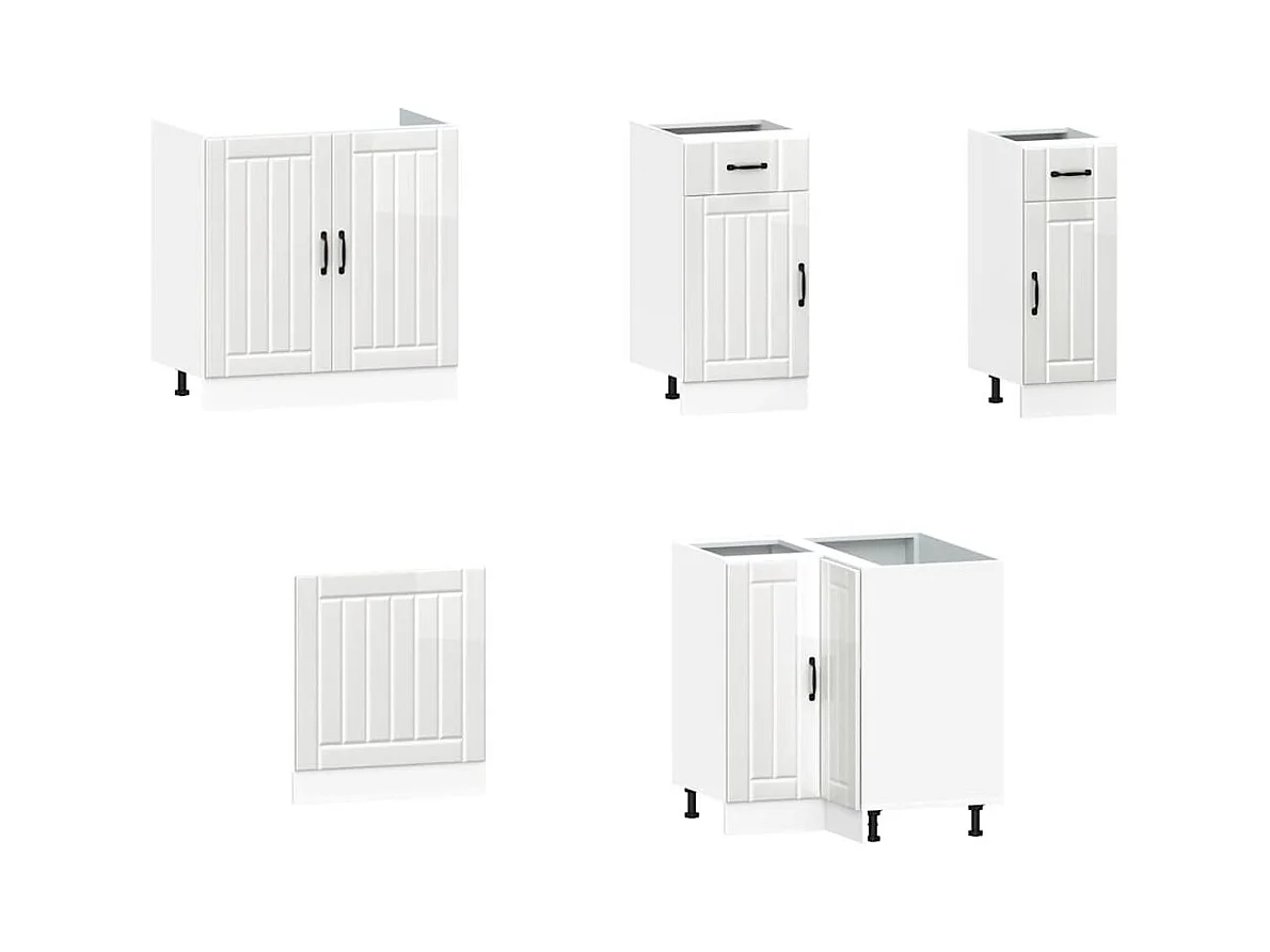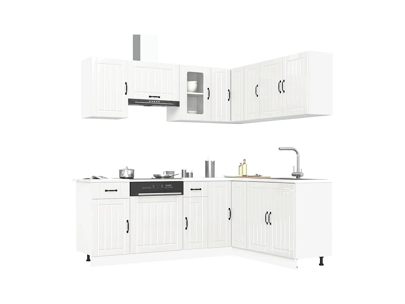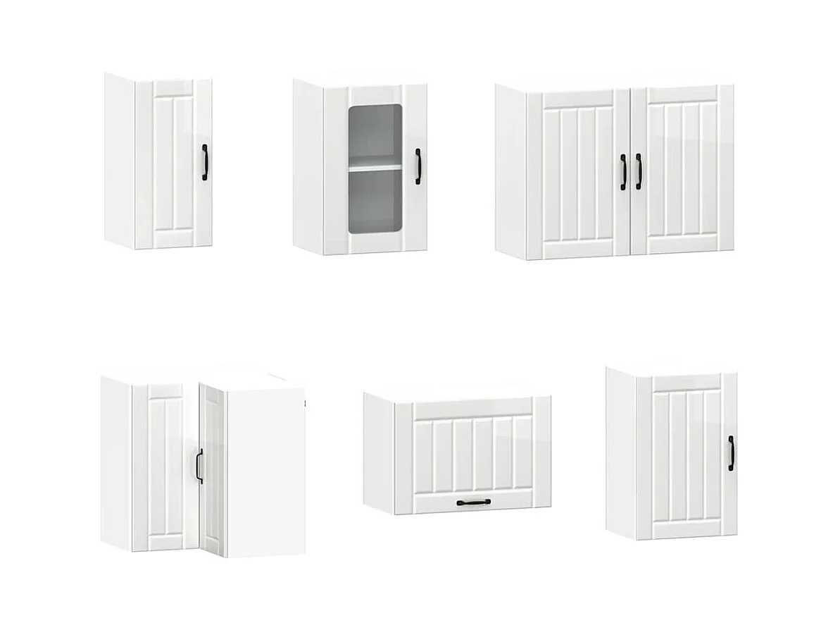 Ensemble de 7 meubles de cuisine "Lucca" en bois d'ingénierie blanc brillant