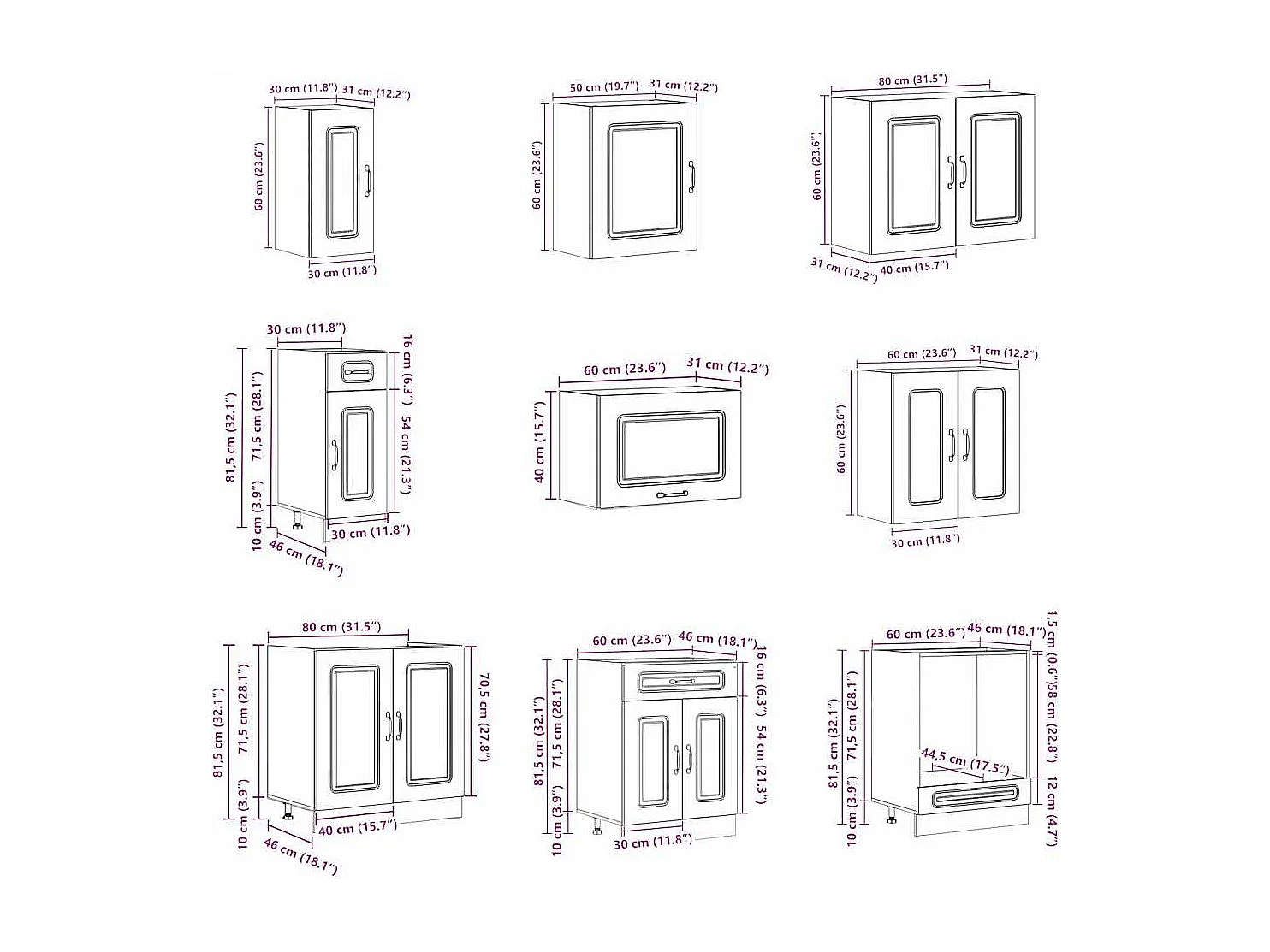 Ensemble de 11 meubles de cuisine "Lyon" en bois d'ingénierie vieilli