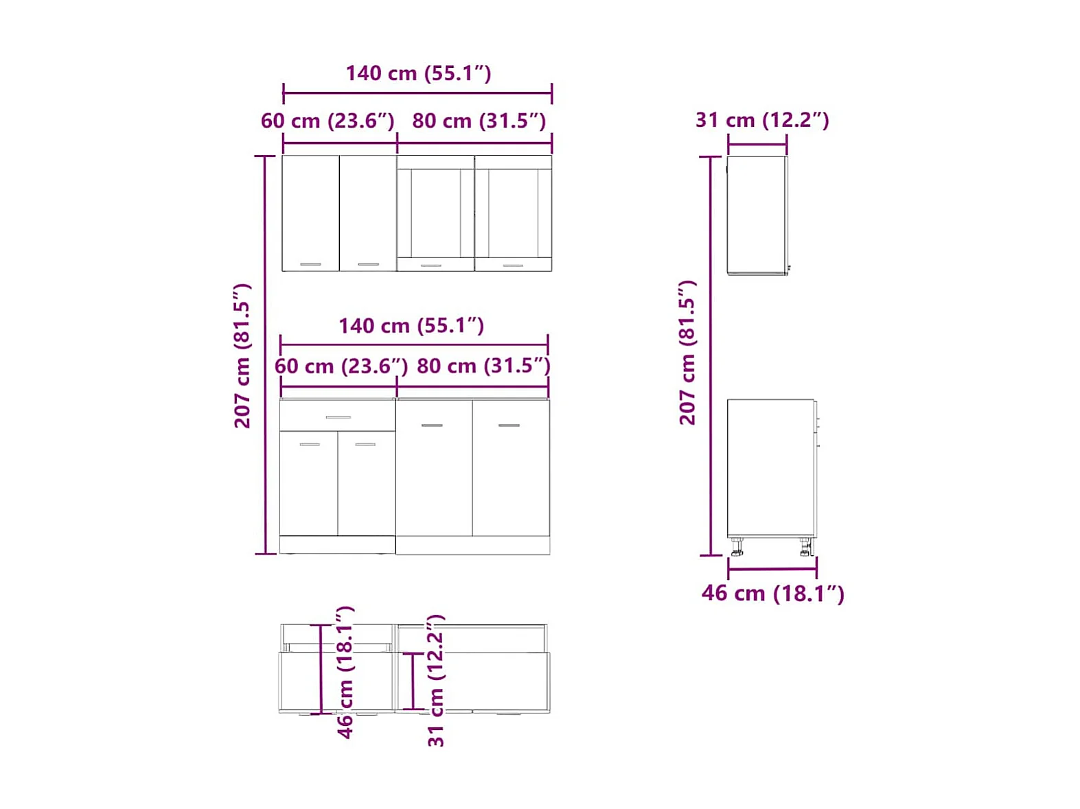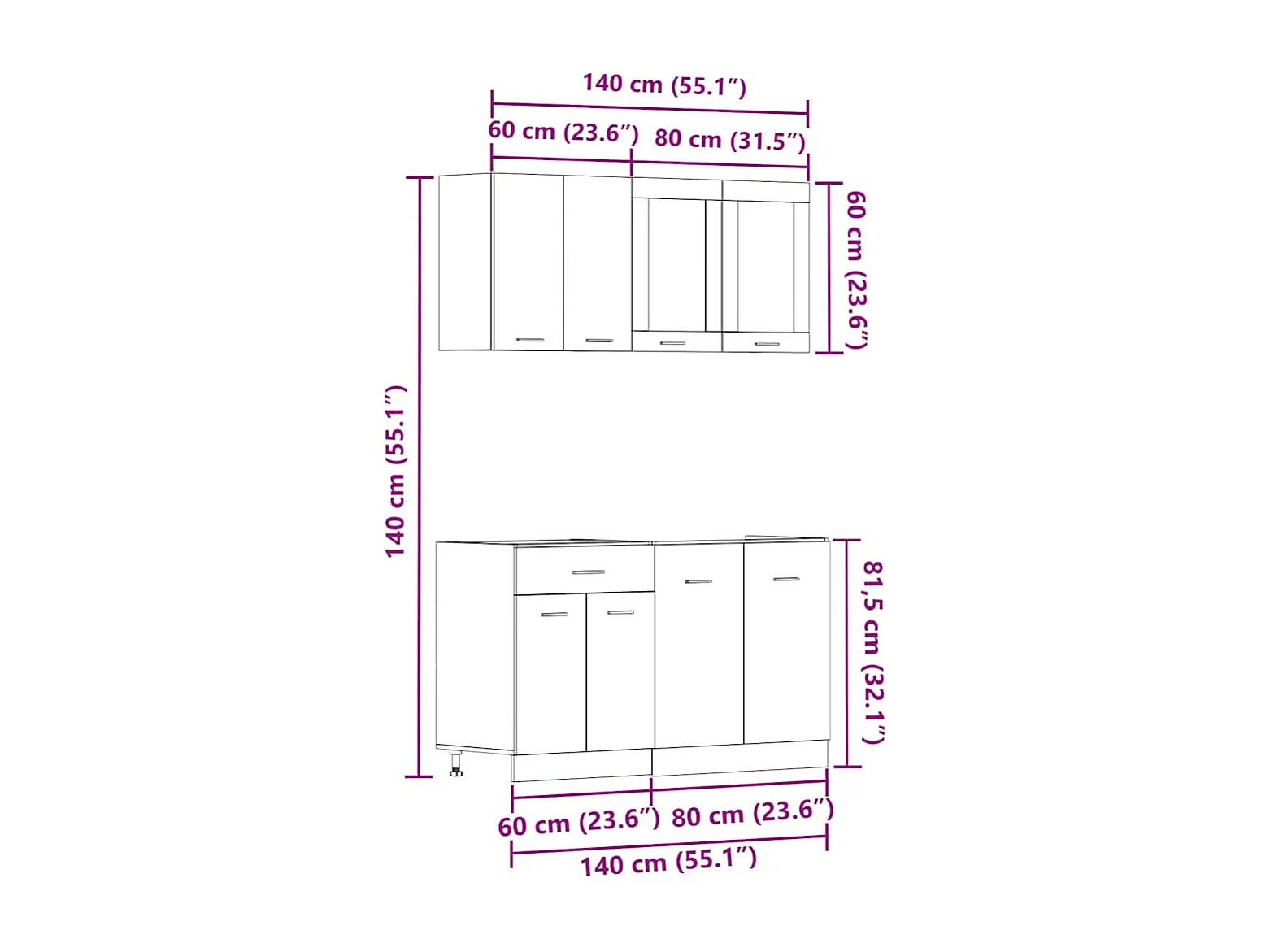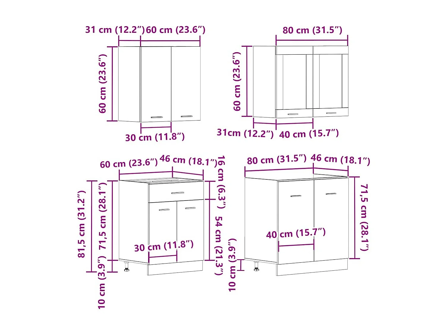 Ensemble de 4 meubles de cuisine "Lyon" en chêne artisanal