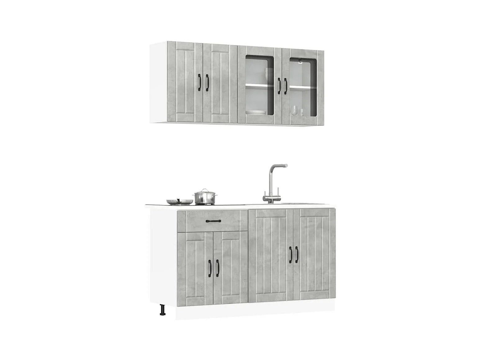 Ensemble de 4 meubles de cuisine "Lucca" en bois d'ingénierie gris béton