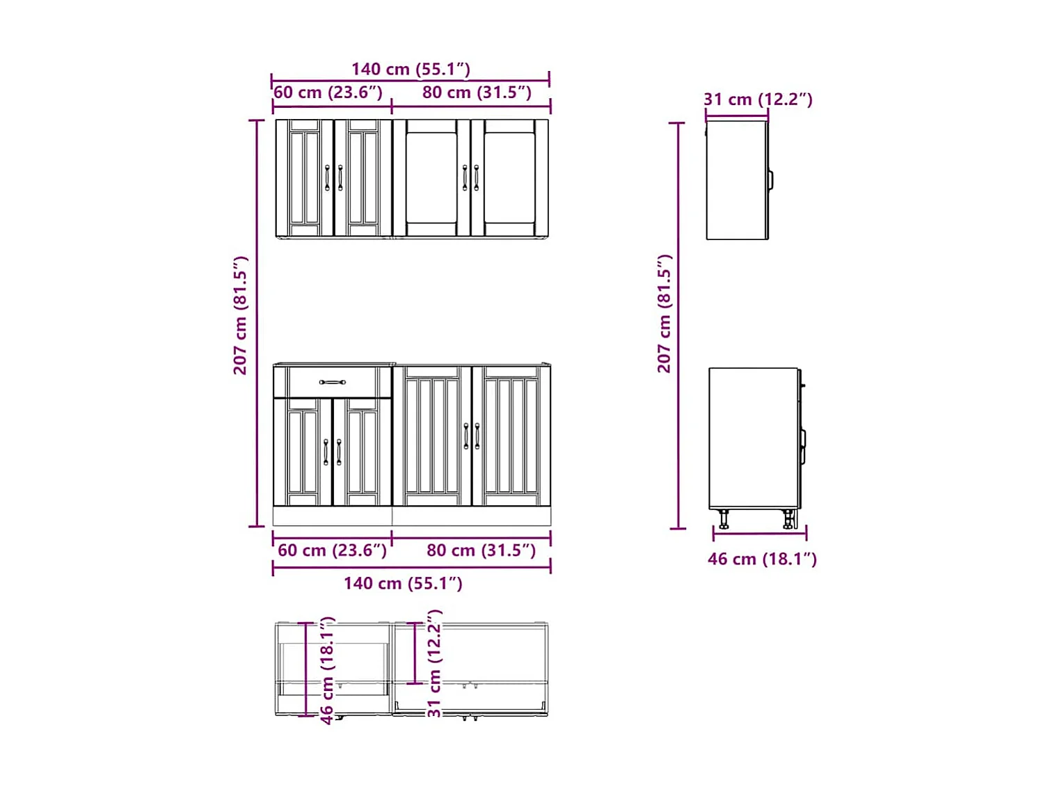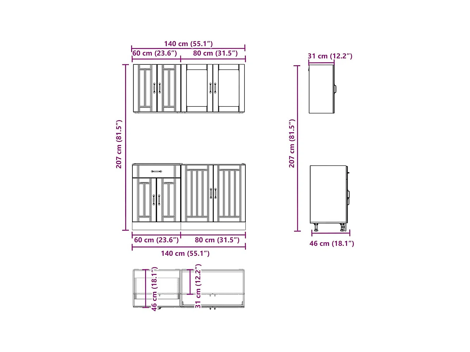 Ensemble de 4 meubles de cuisine "Porto" en bois d'ingénierie Sonoma gris