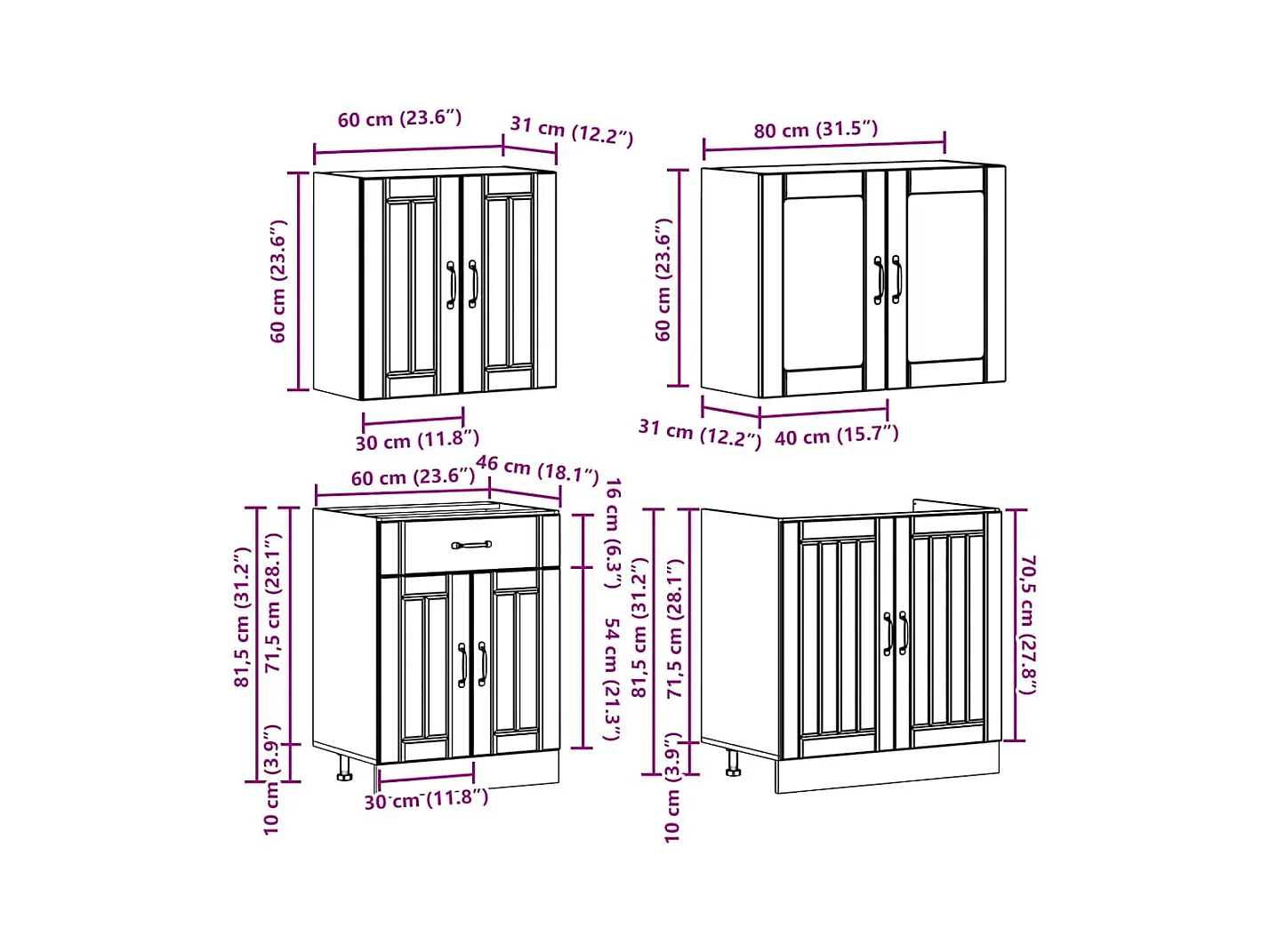 Ensemble d'armoires de cuisine 4 pcs Kalmar bois d'ingénierie