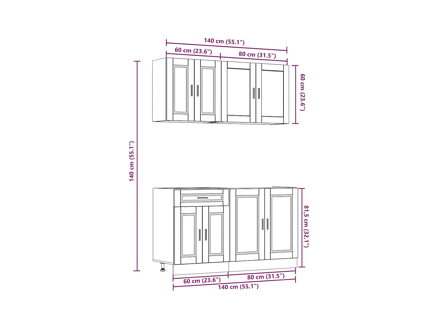 Ensemble d'armoires de cuisine 7 pcs Kalmar bois d'ingénierie
