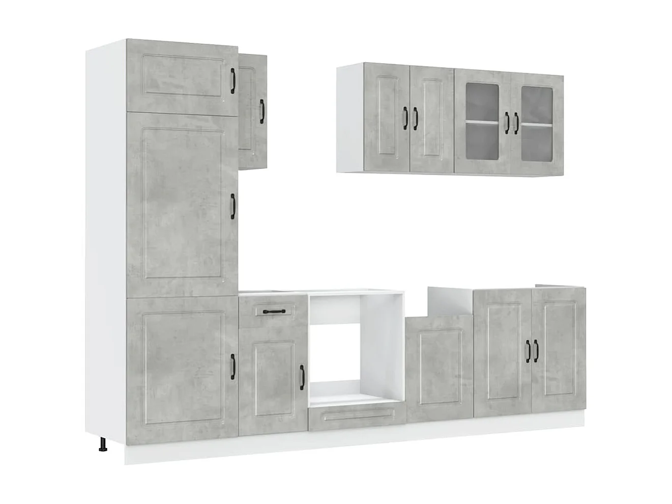 Ensemble de 8 meubles de cuisine "Lucca" en bois d'ingénierie gris béton