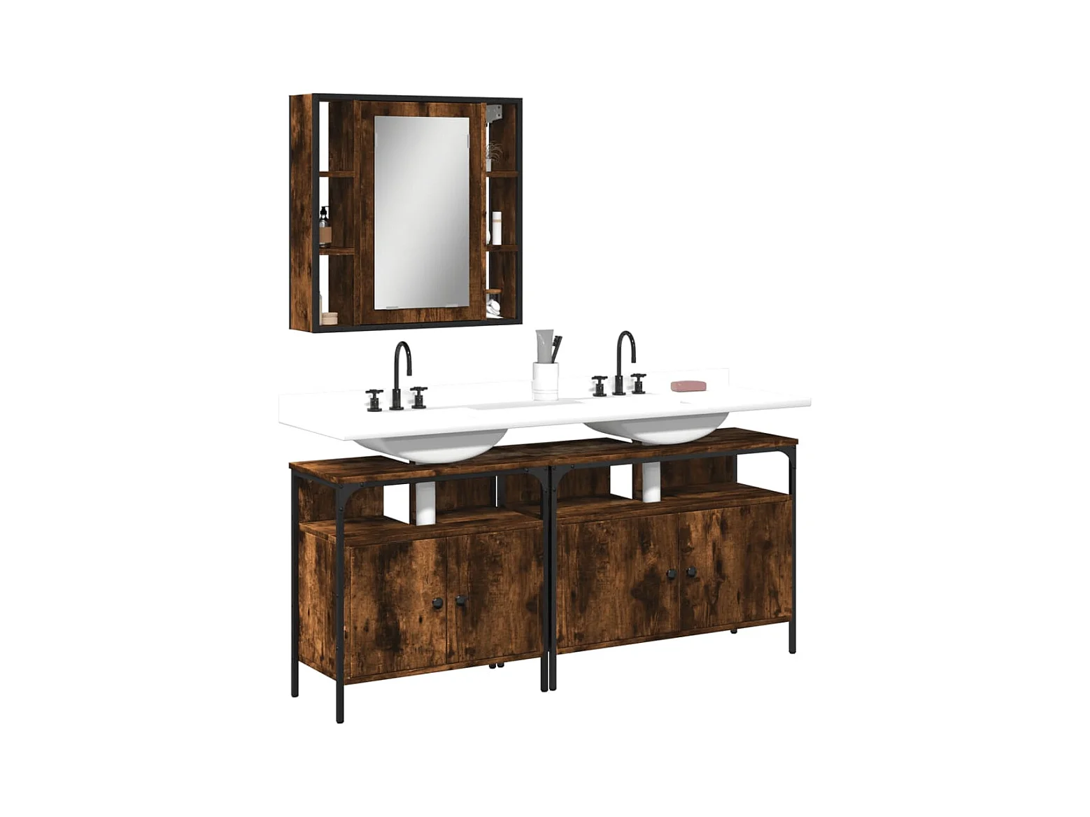 Ensemble d'armoires de salle de bain 2 pcs chêne fumé