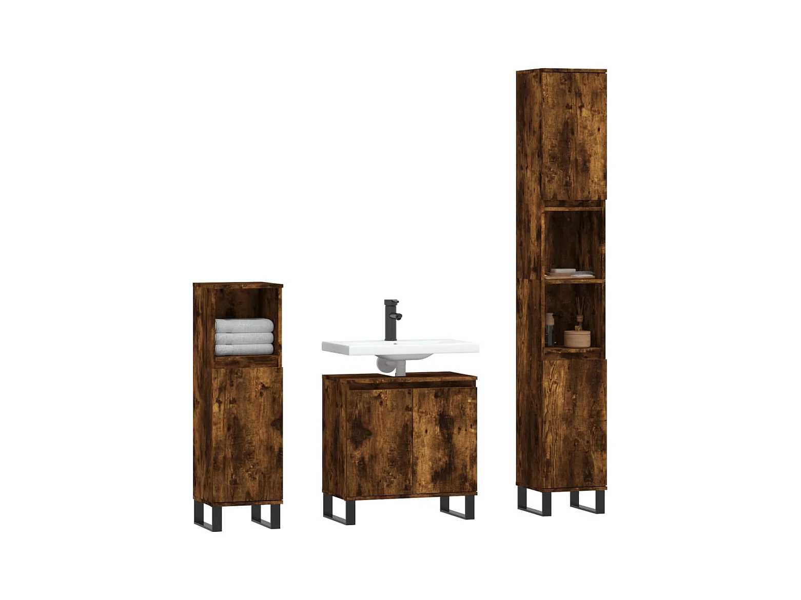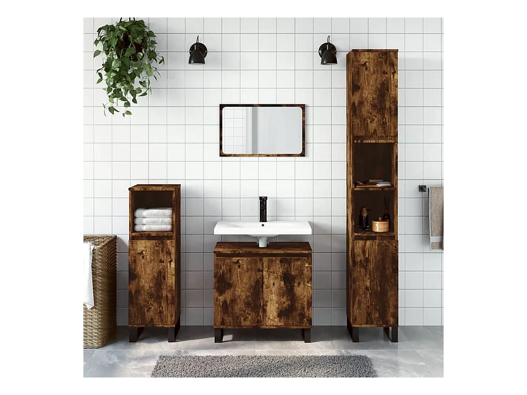 Ensemble d'armoires de salle de bain 3 pcs chêne fumé
