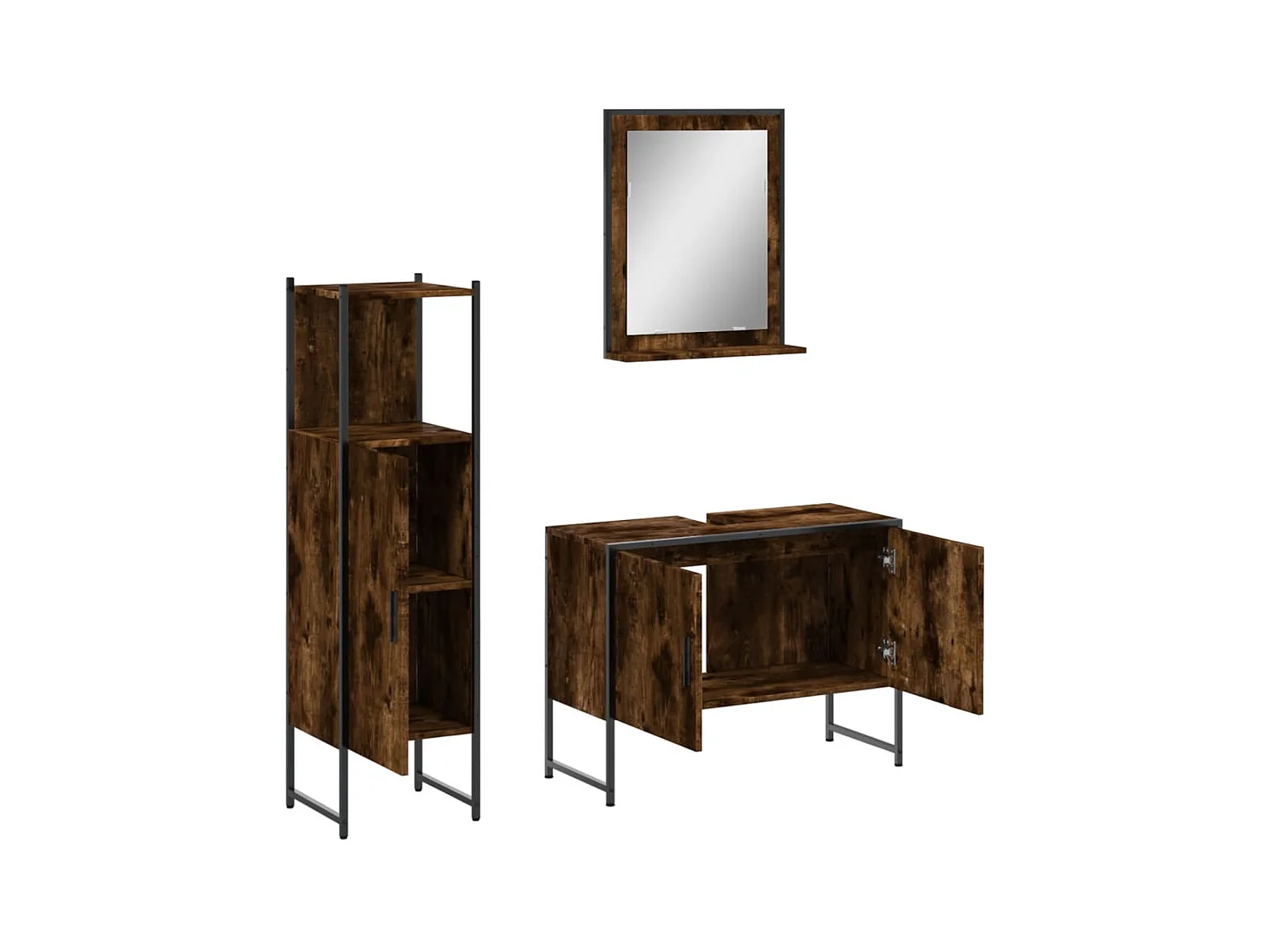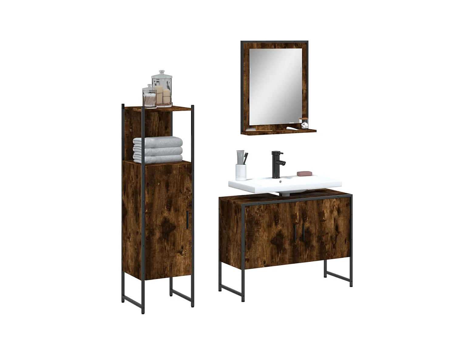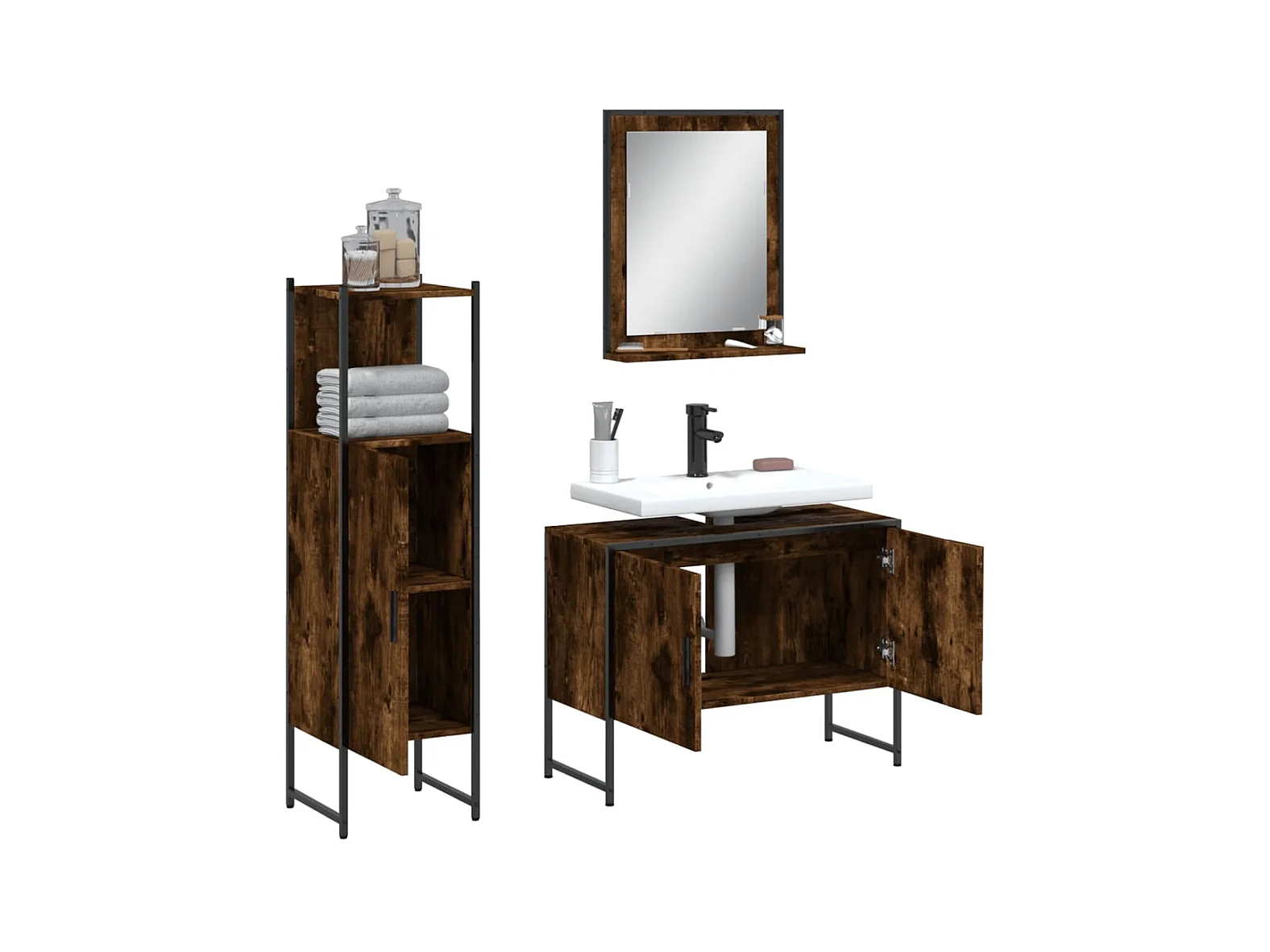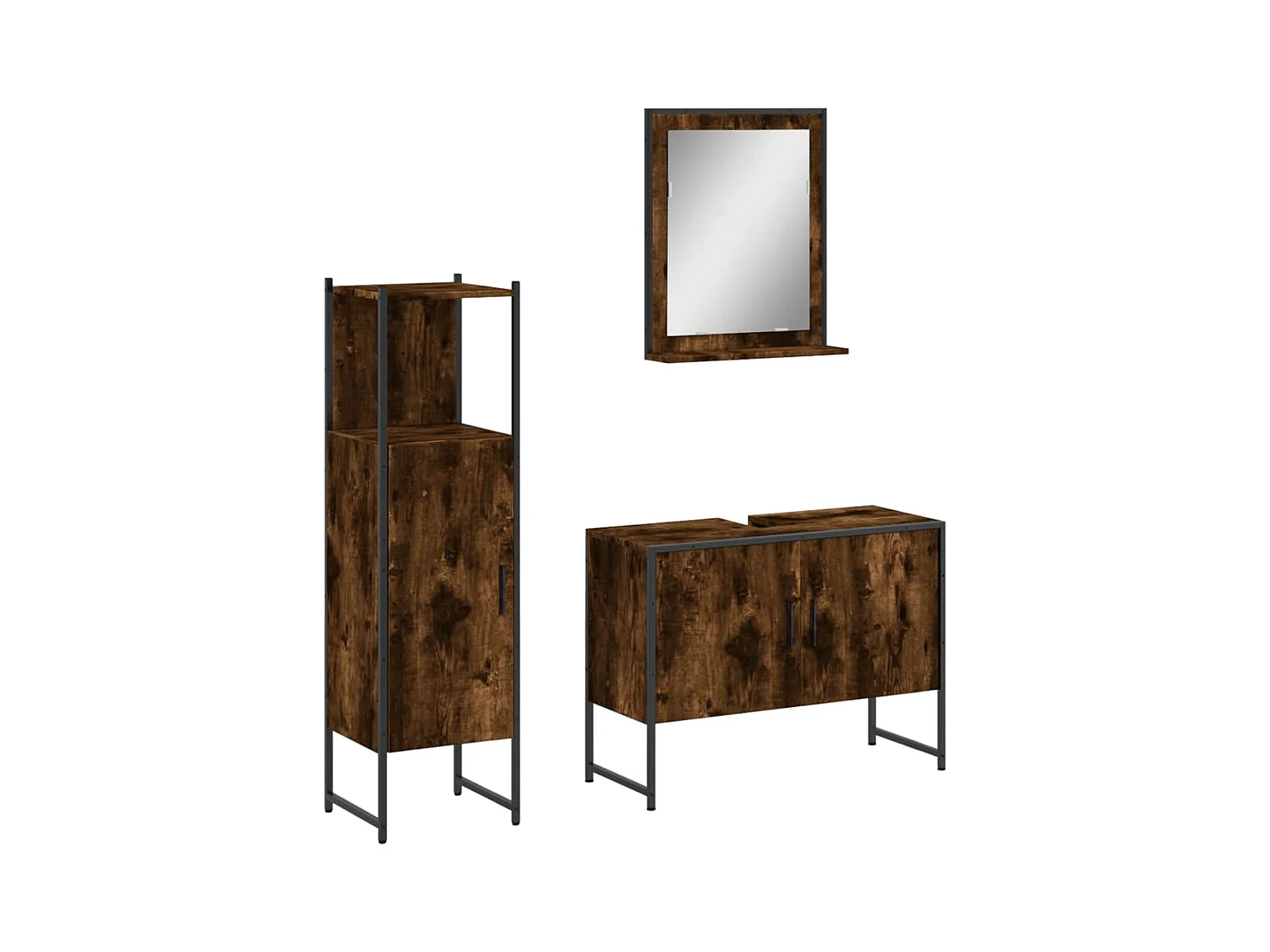 Ensemble d'armoires de salle de bain 3 pcs chêne fumé FR73606