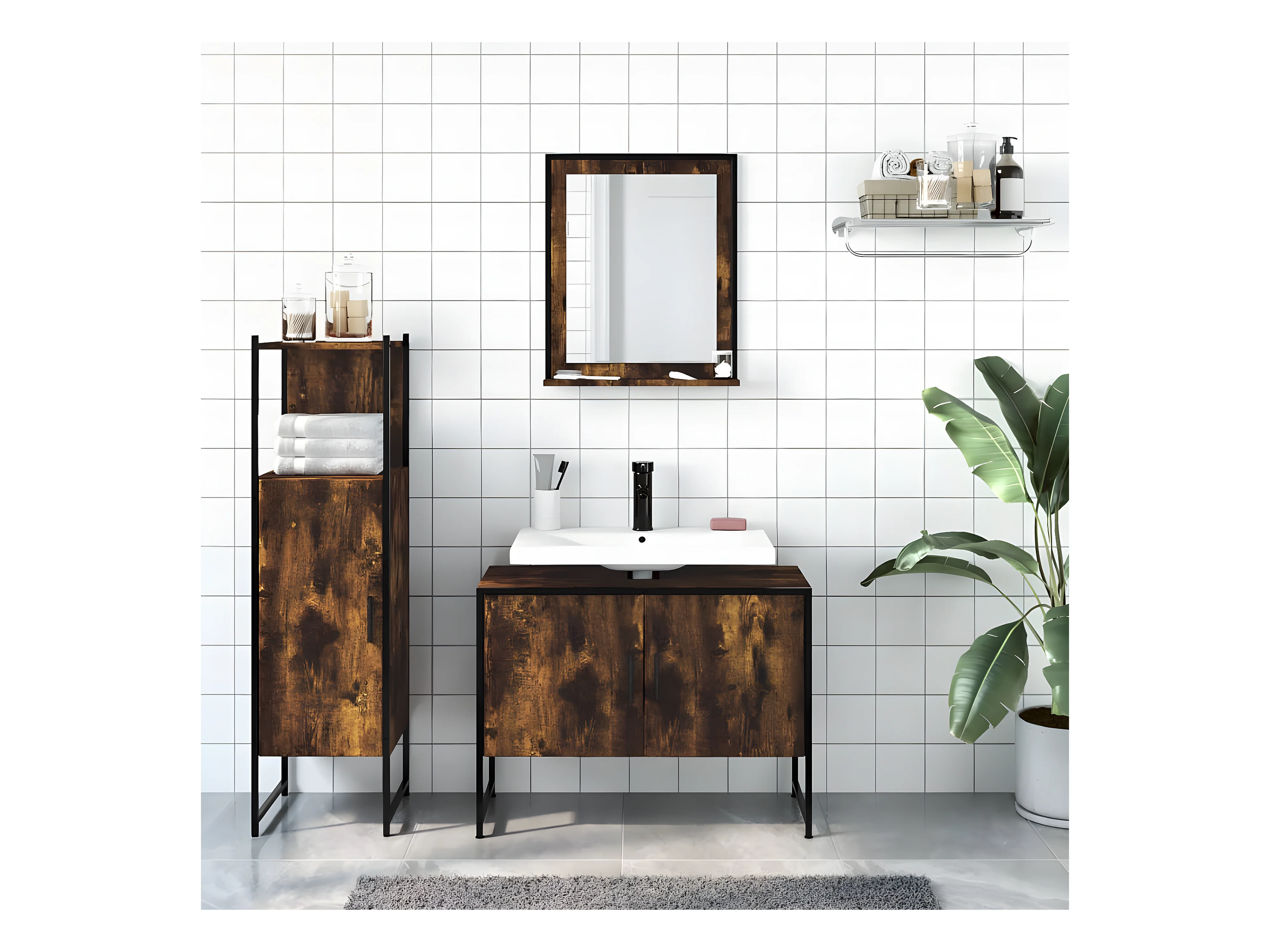 Ensemble d'armoires de salle de bain 3 pcs chêne fumé FR17000