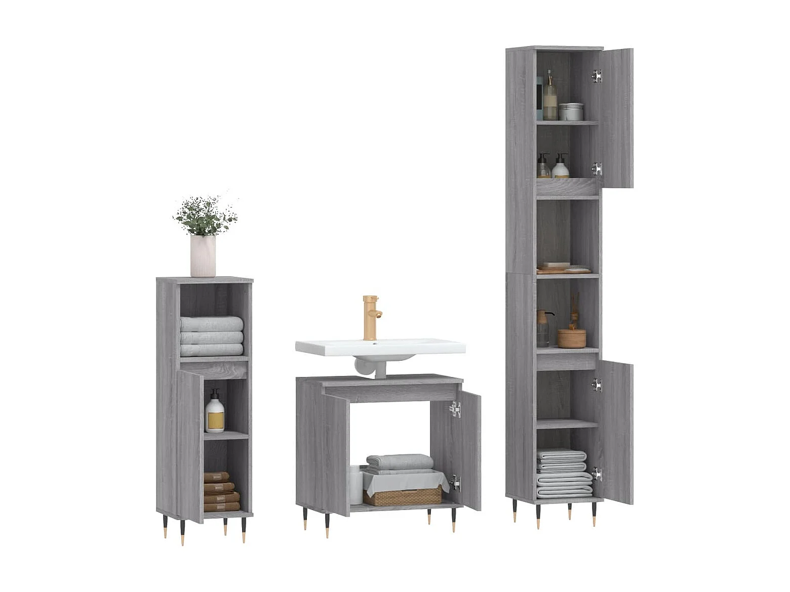 Ensemble d'armoires de salle de bain 3 pcs sonoma gris