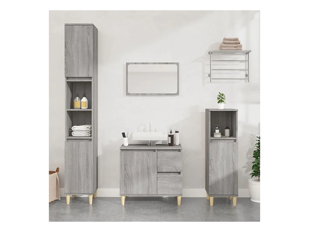 Ensemble d'armoires de salle de bain 3 pcs sonoma gris FR89203