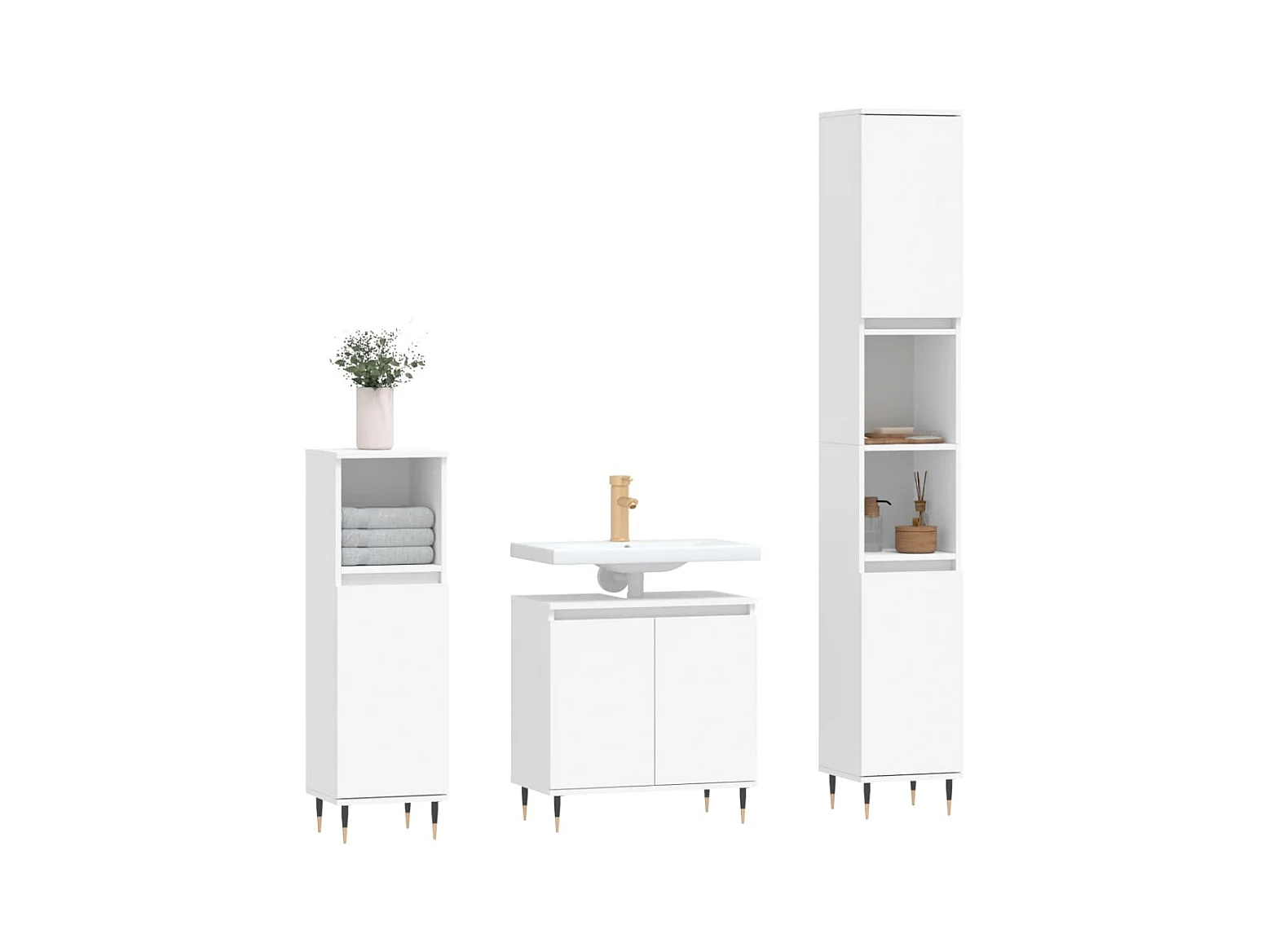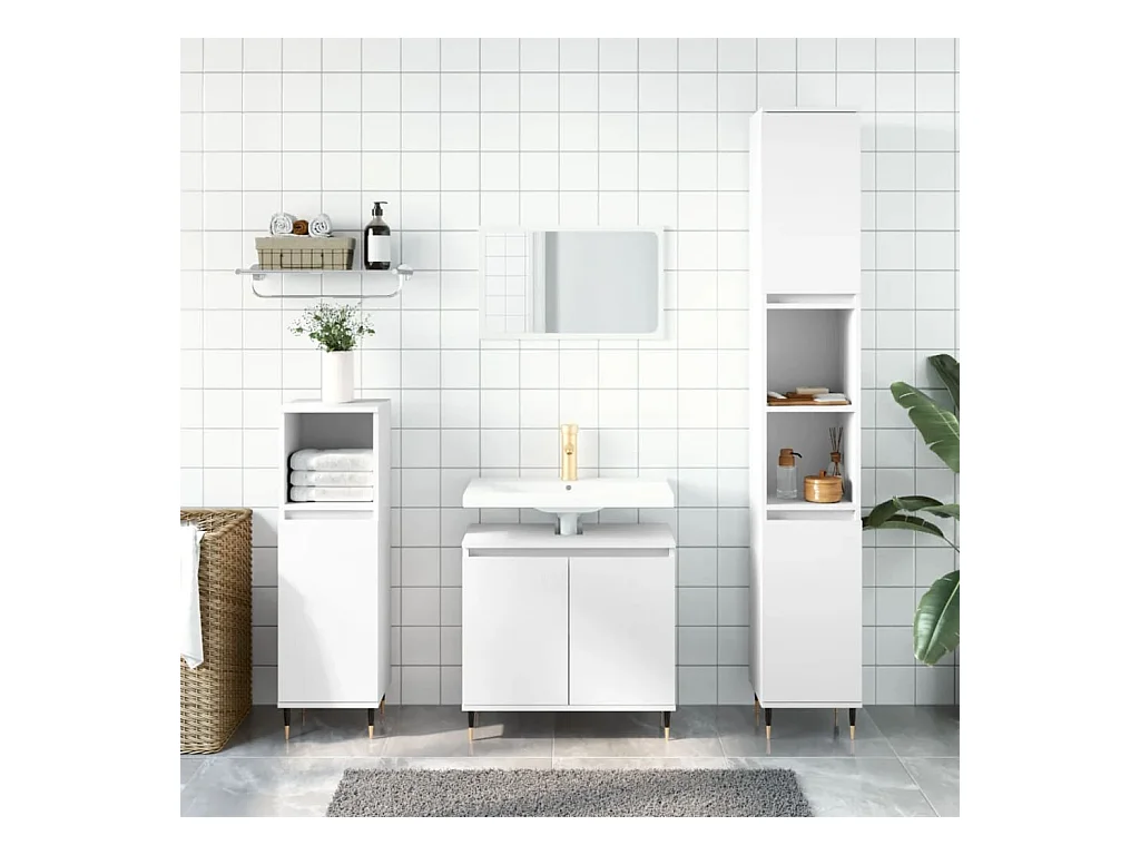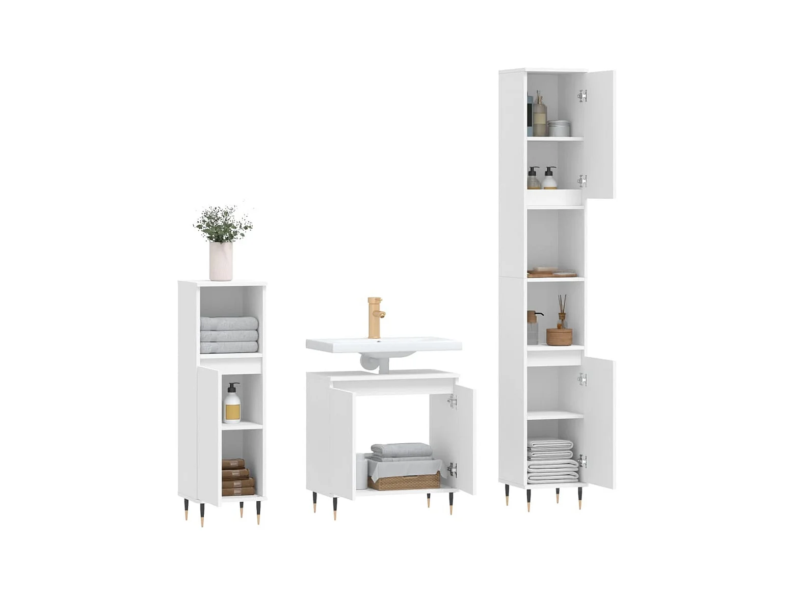 Ensemble d'armoires salle de bain 3 pcs blanc bois d'ingénierie