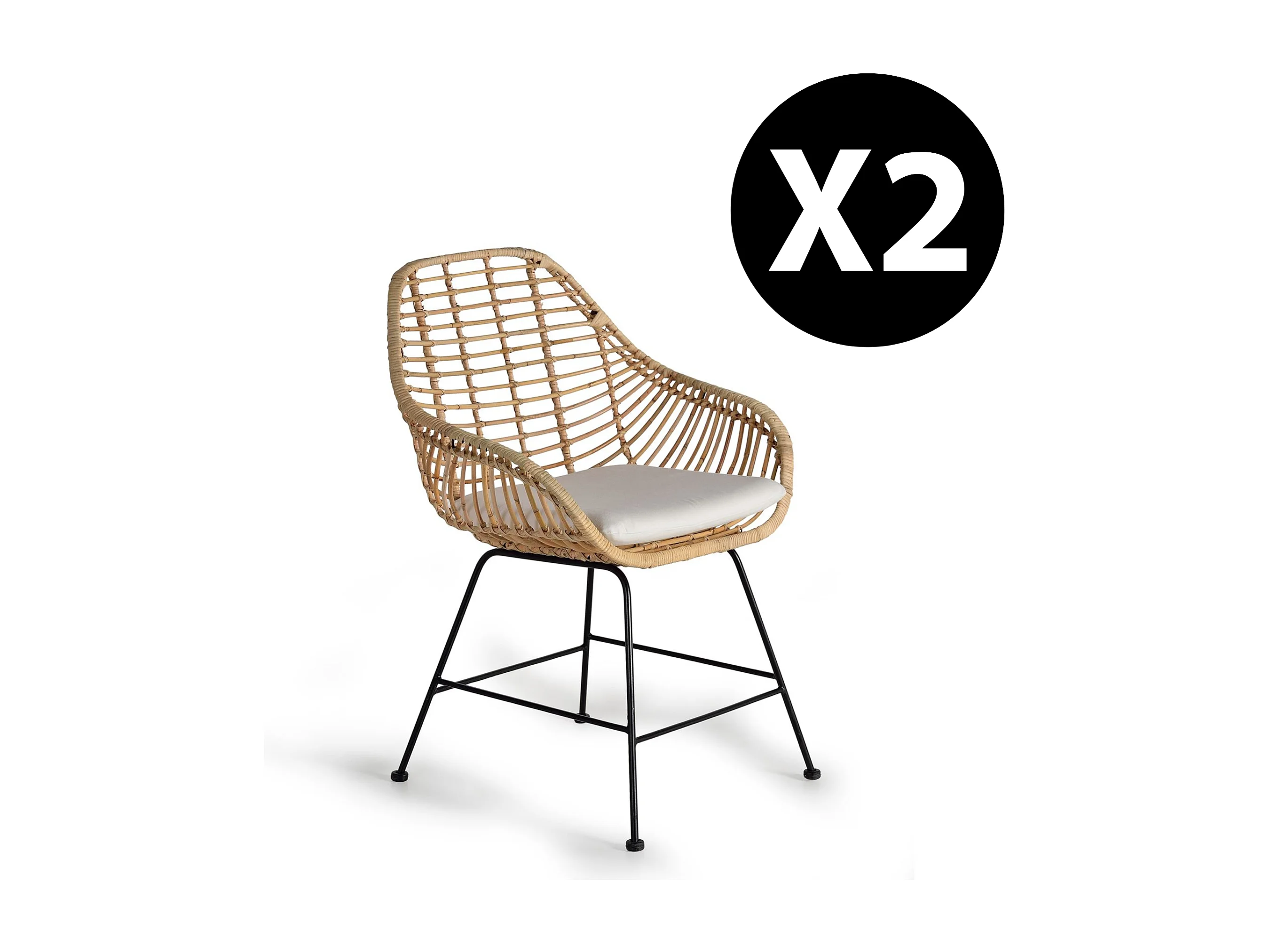 Lot de 2 chaises en rotin et métal