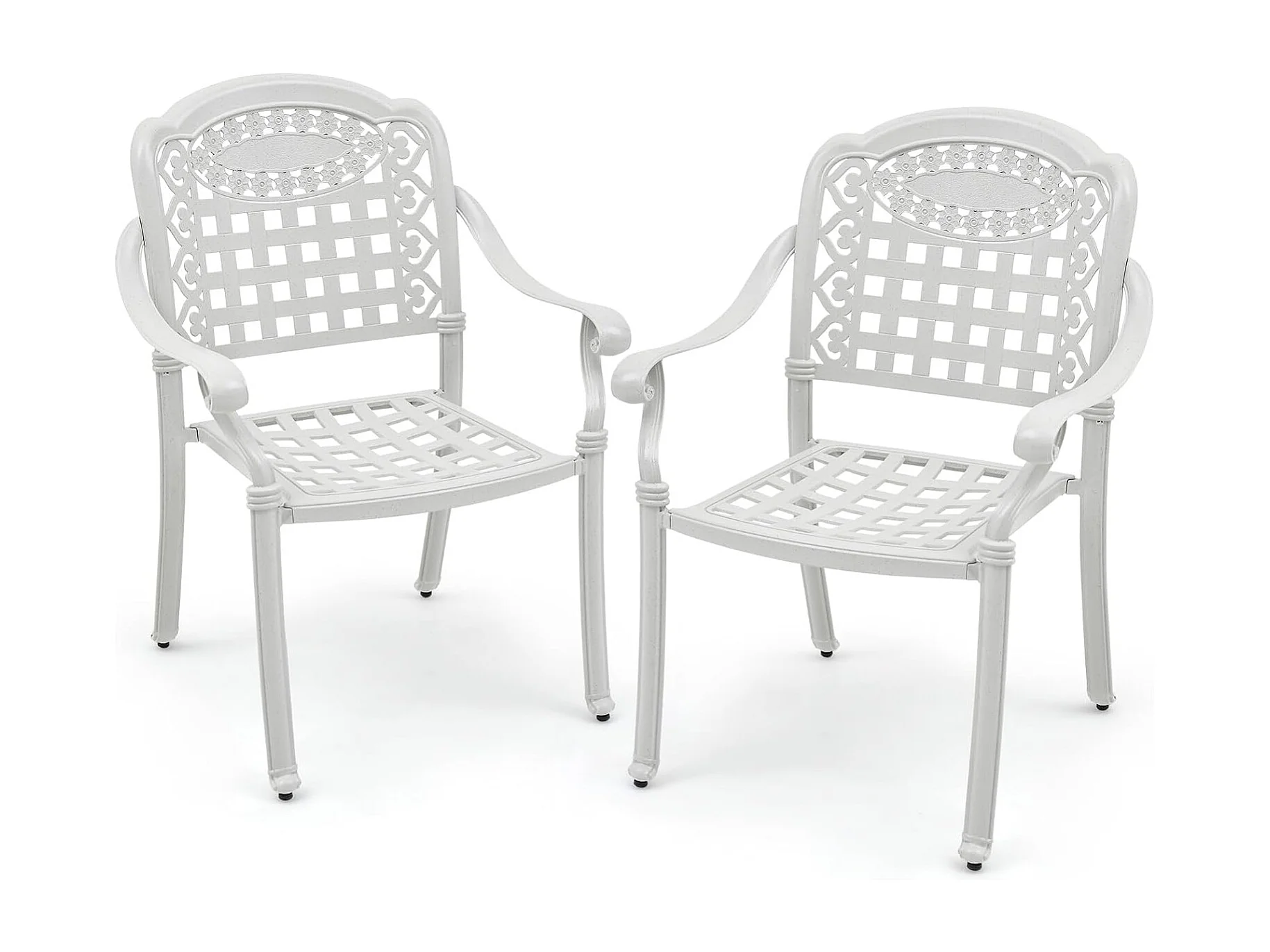 Ensemble de 2 Chaises de Terrasse en Aluminium Coulé, Chaises de Salle à Manger Extérieures avec Accoudoirs, Chaises Empilables pour Jardin, Cour (en Damier, Blanc)
