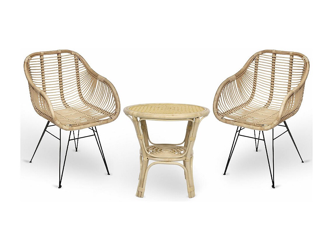 Ensemble de 2 chaises Desy en bois de bambou avec pieds en fer et 1 table en bambou