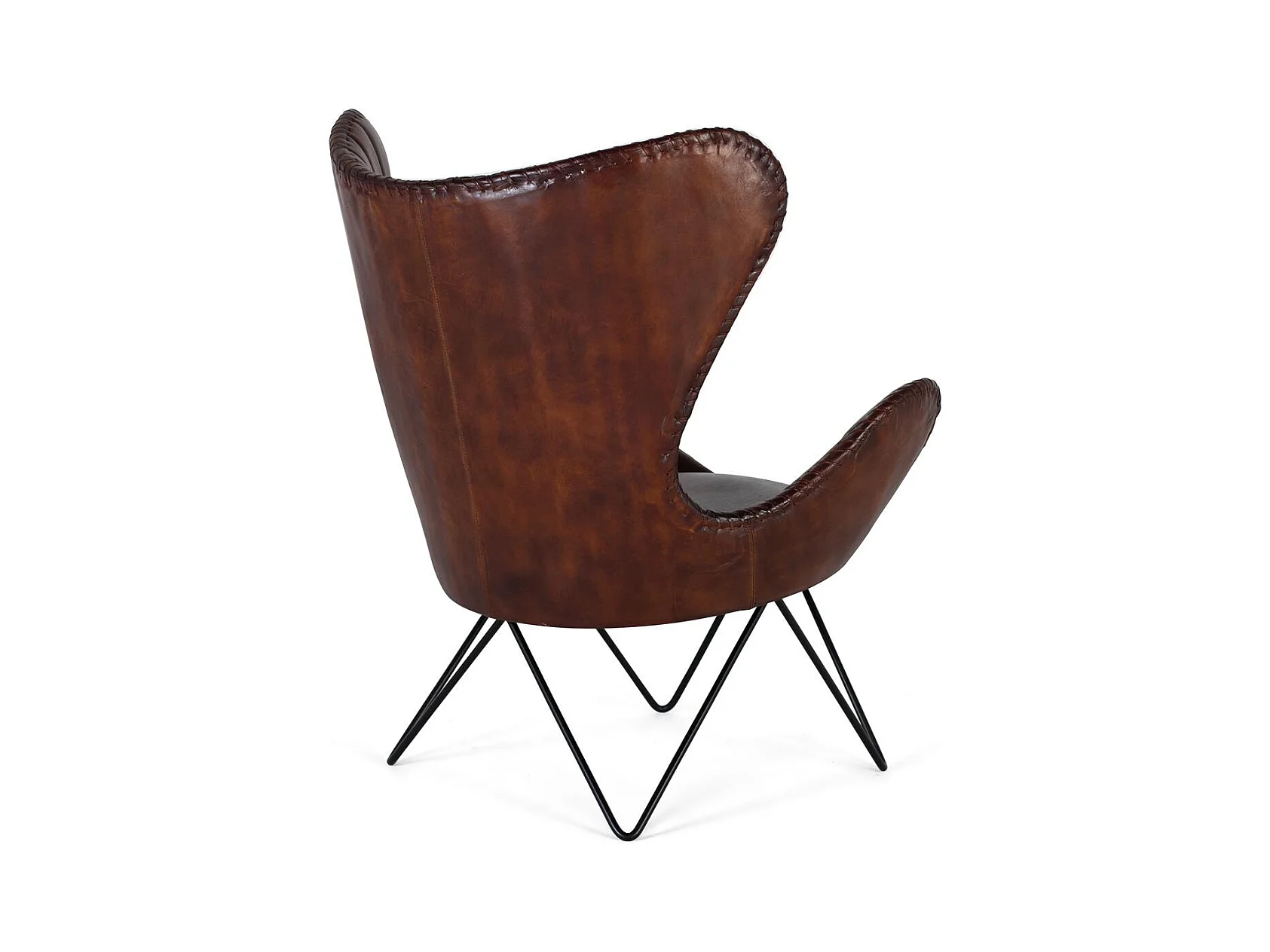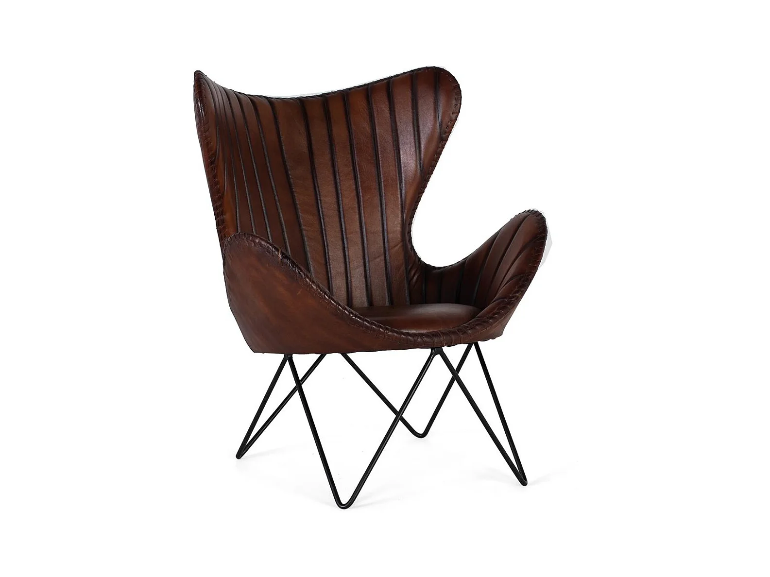 Fauteuil recouvert de cuir naturel marron avec pieds en métal
