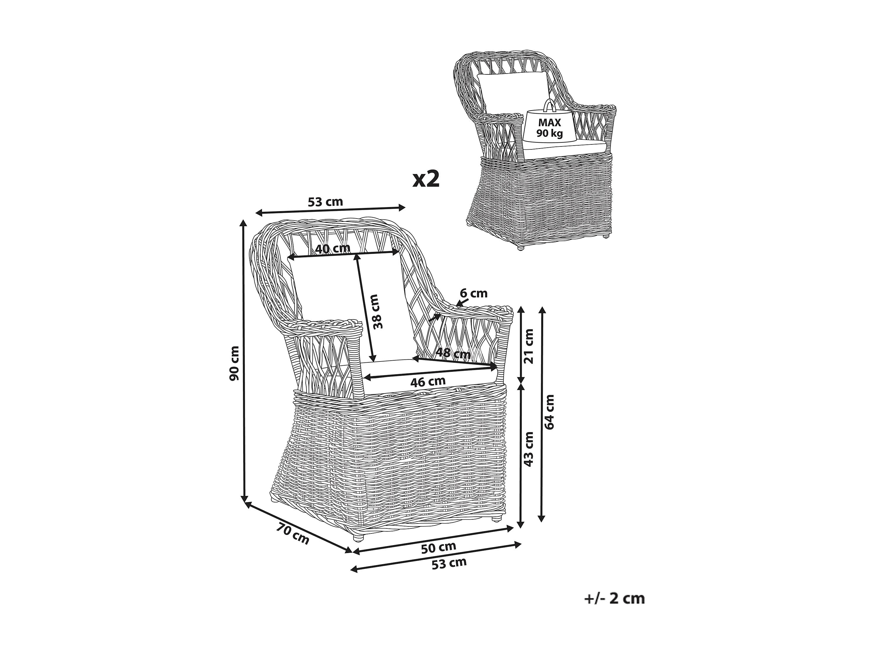 Lot de 2 chaises de jardin en rotin naturel MAROS II