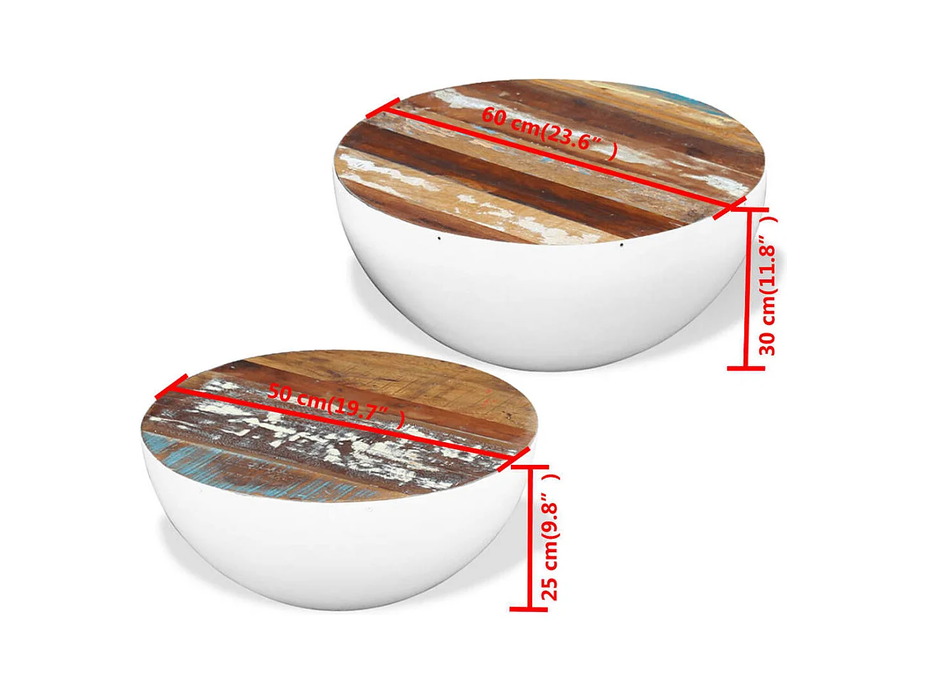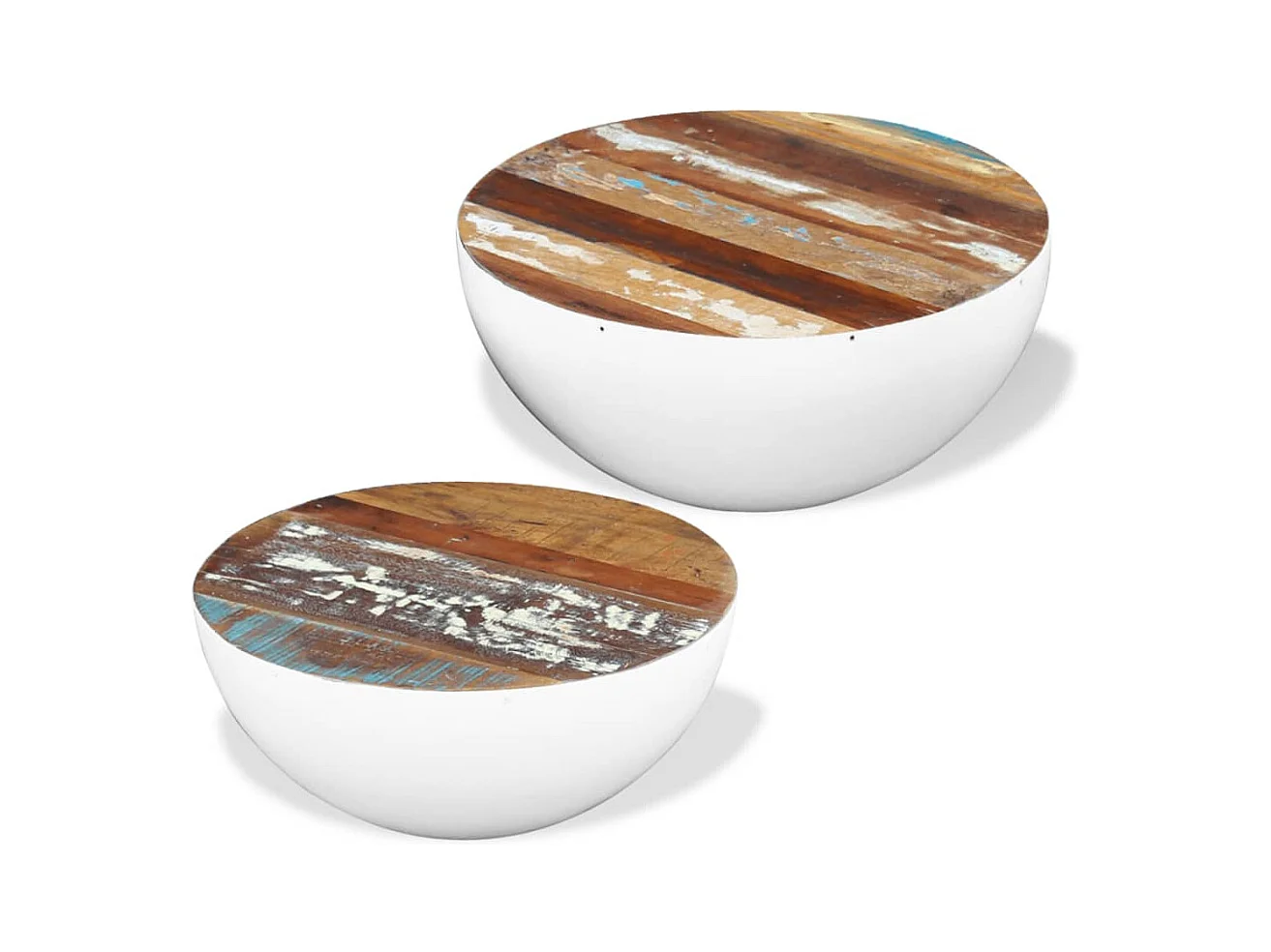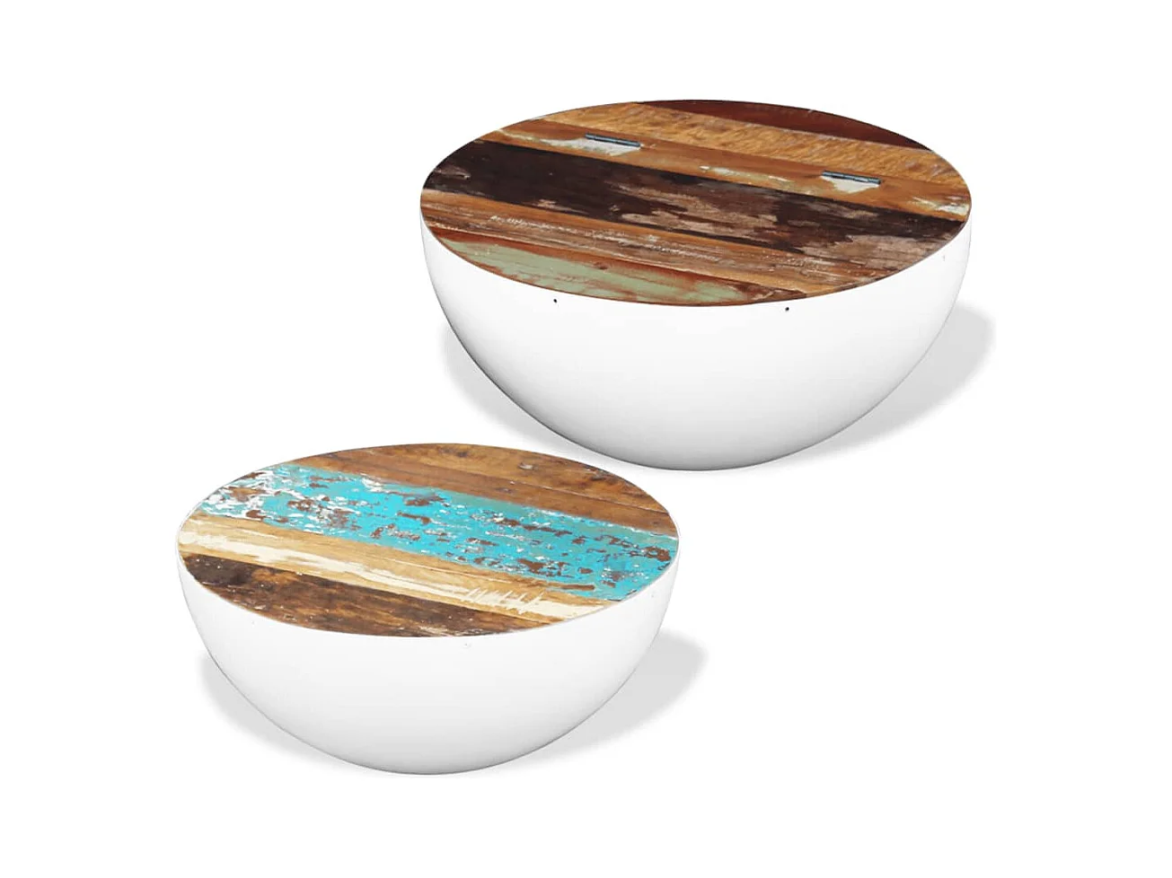 Ensemble de 2 tables basses Forme de bol Bois de récupération