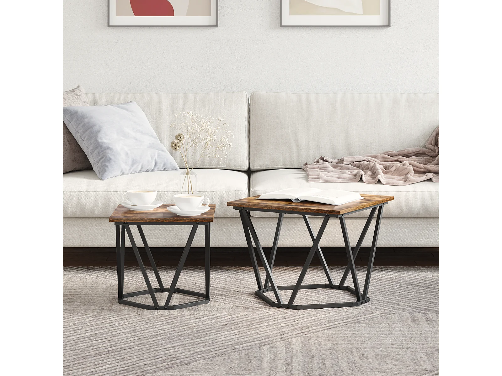 Ensemble de 2 tables d'appoint en chêne fumé en bois stratifié