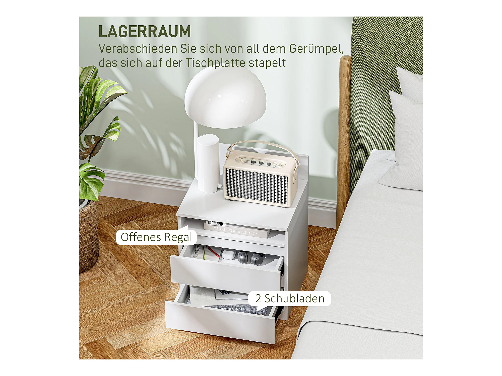 Table de Chevet Table de Nuit Bout de Canapé avec étagères de Rangement et 2 tiroirs, FBT100-W
