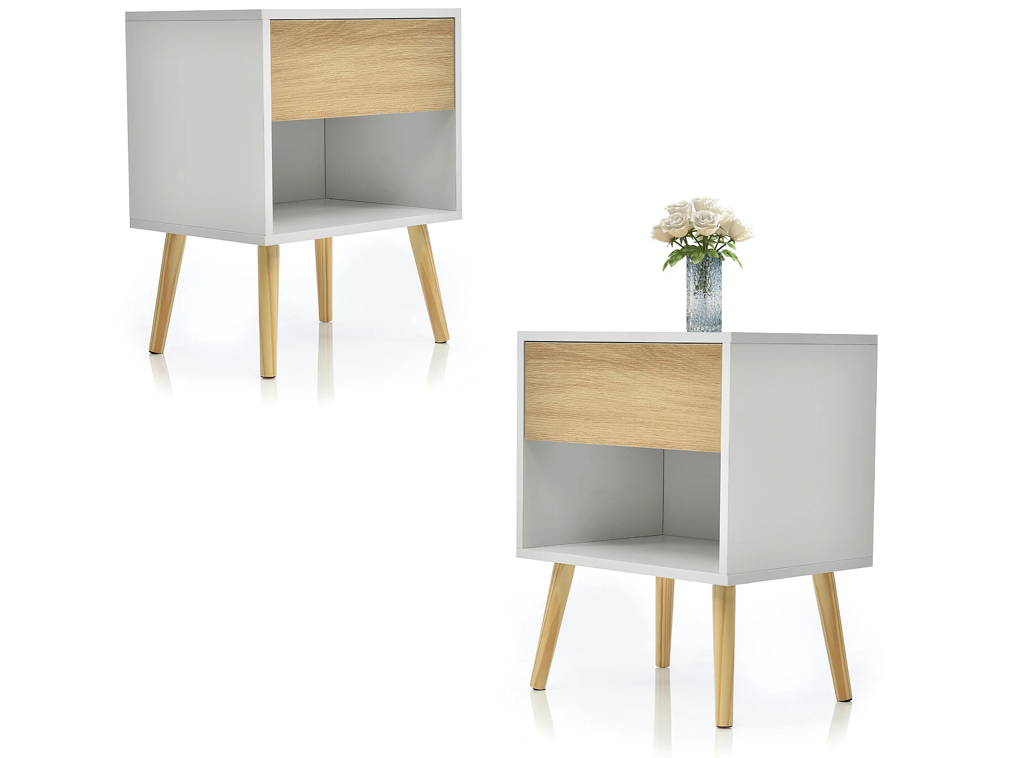 Ensemble de 2 tables de chevet en bois avec tiroirs