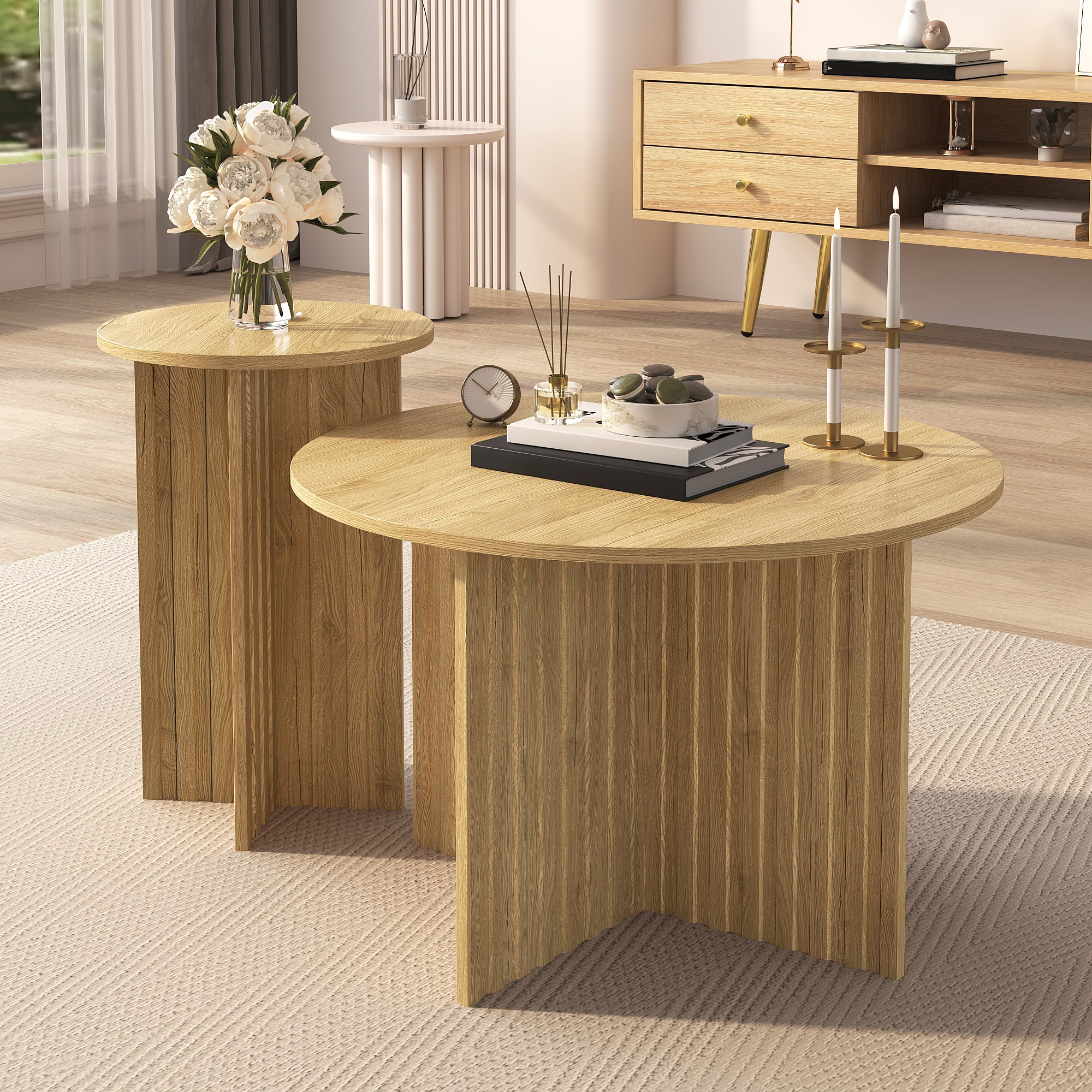 Ensemble de 2 tables gigognes rondes en bois, style scandinave moderne, peu encombrantes et polyvalentes, tables basses robustes en MDF/PB