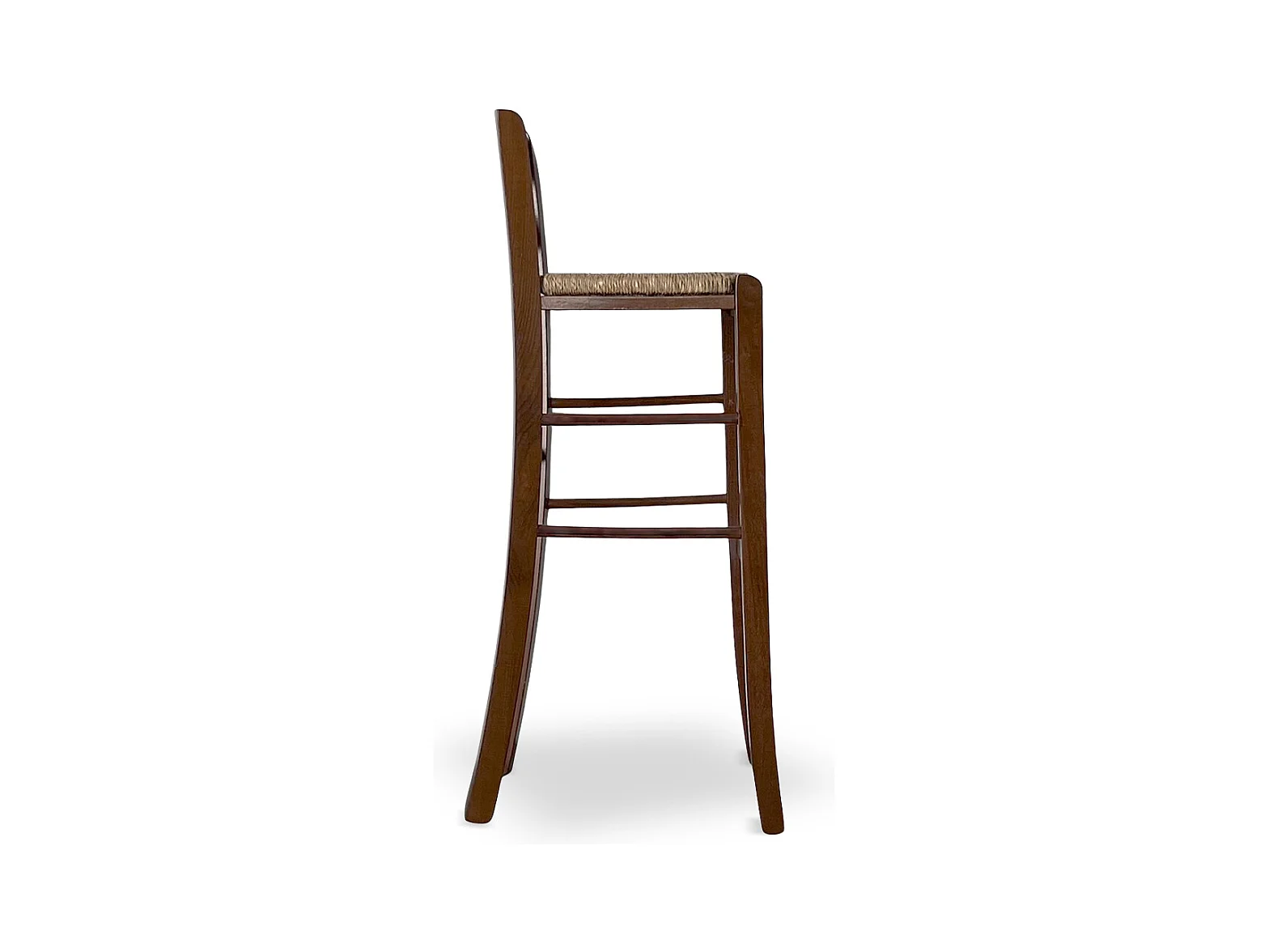 Lot de 2 tabourets de bar en bois avec assise en paille de noyer foncé, h 67 cm