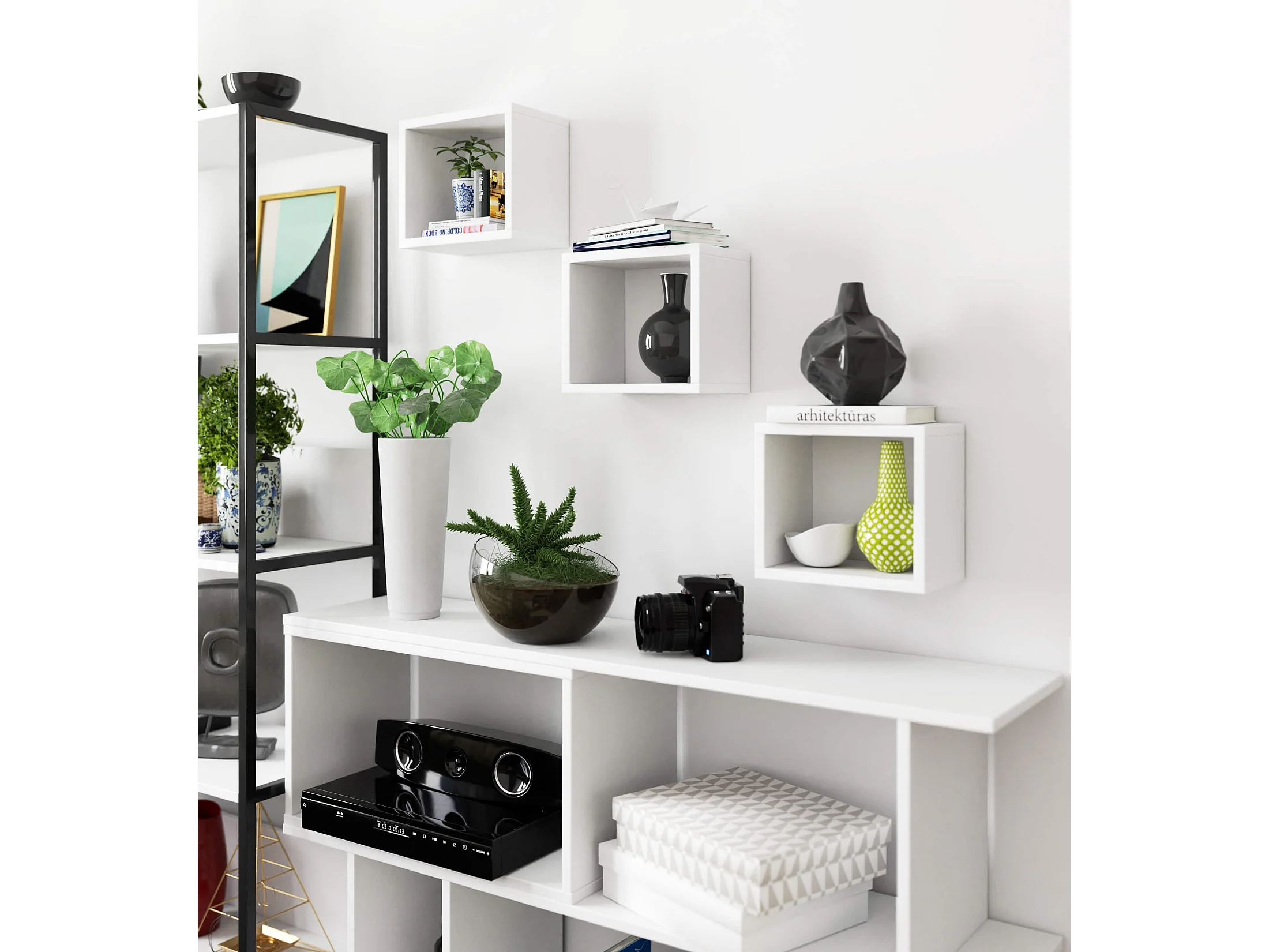 Ensemble de 3 etagères carrées AKORD K25 cm avec fixation invisible Blanche 25 cm 3 étagères 25x15x25 cm