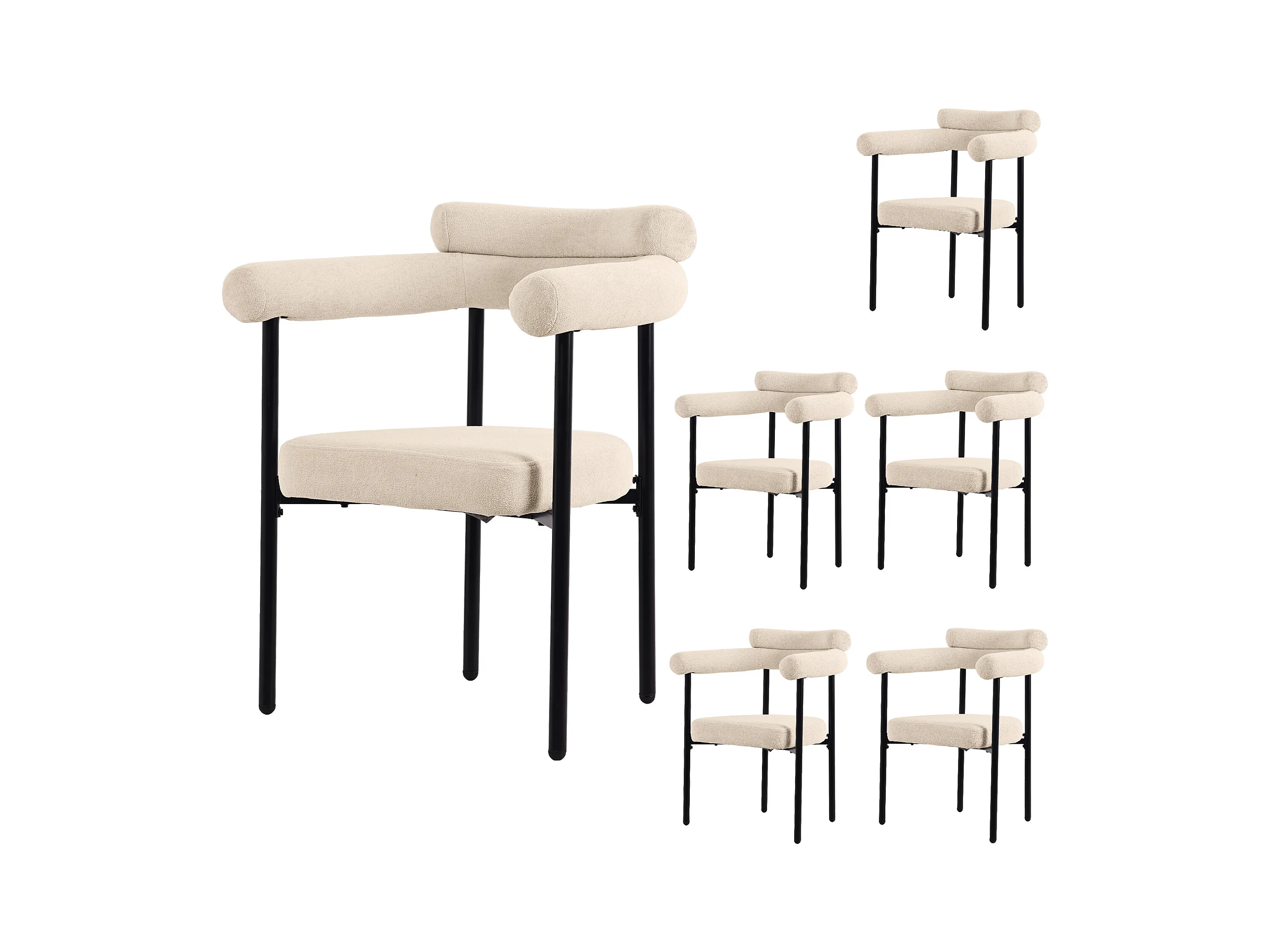 Lot de 6 Chaises de salle à manger avec accoudoirs - tissu en sherpa - style moderne - Beige
