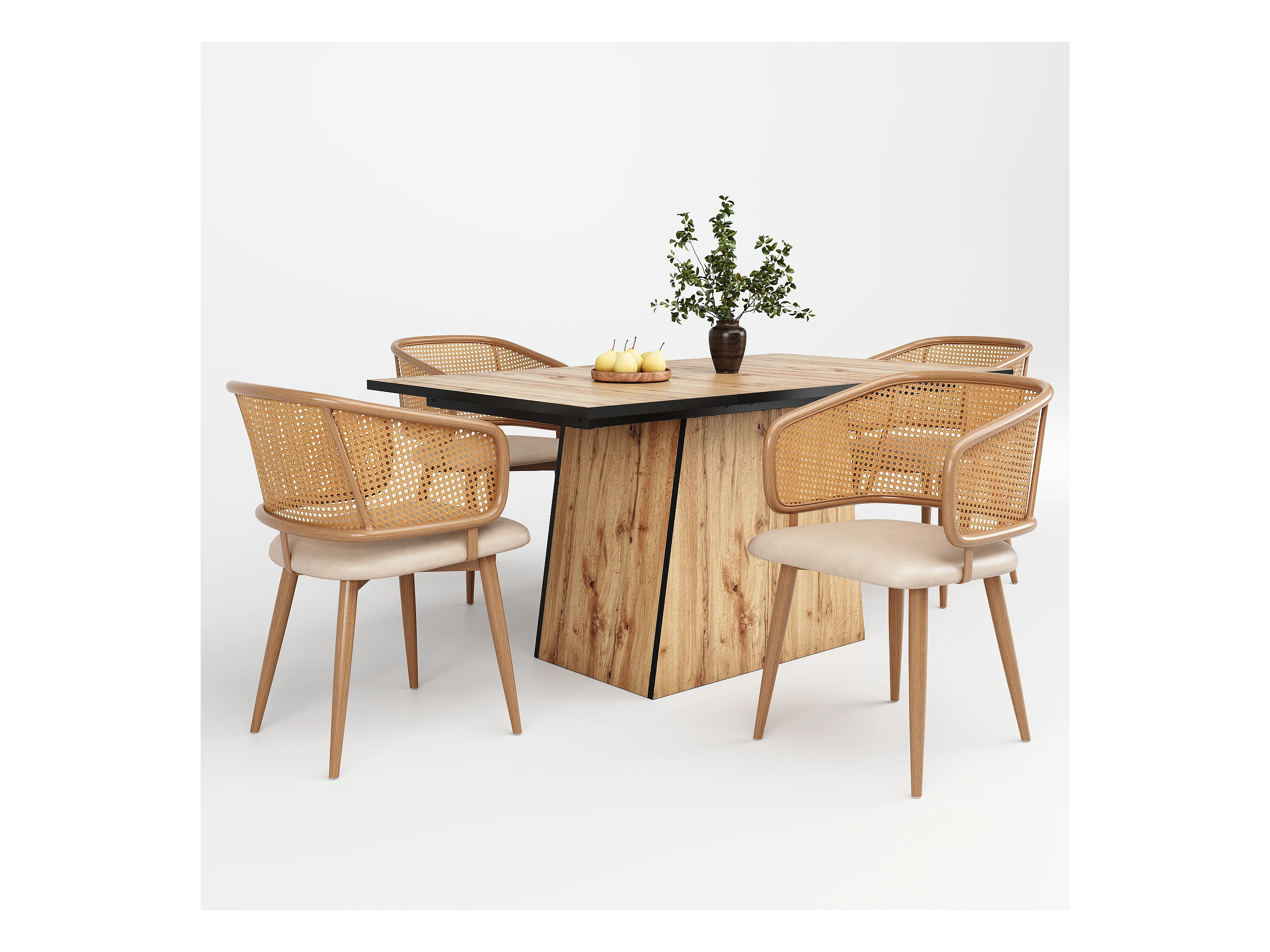 4 chaises de salle à manger, dossier en rotin, assise en PU, ergonomique, métal, beige (47x51x79 cm)