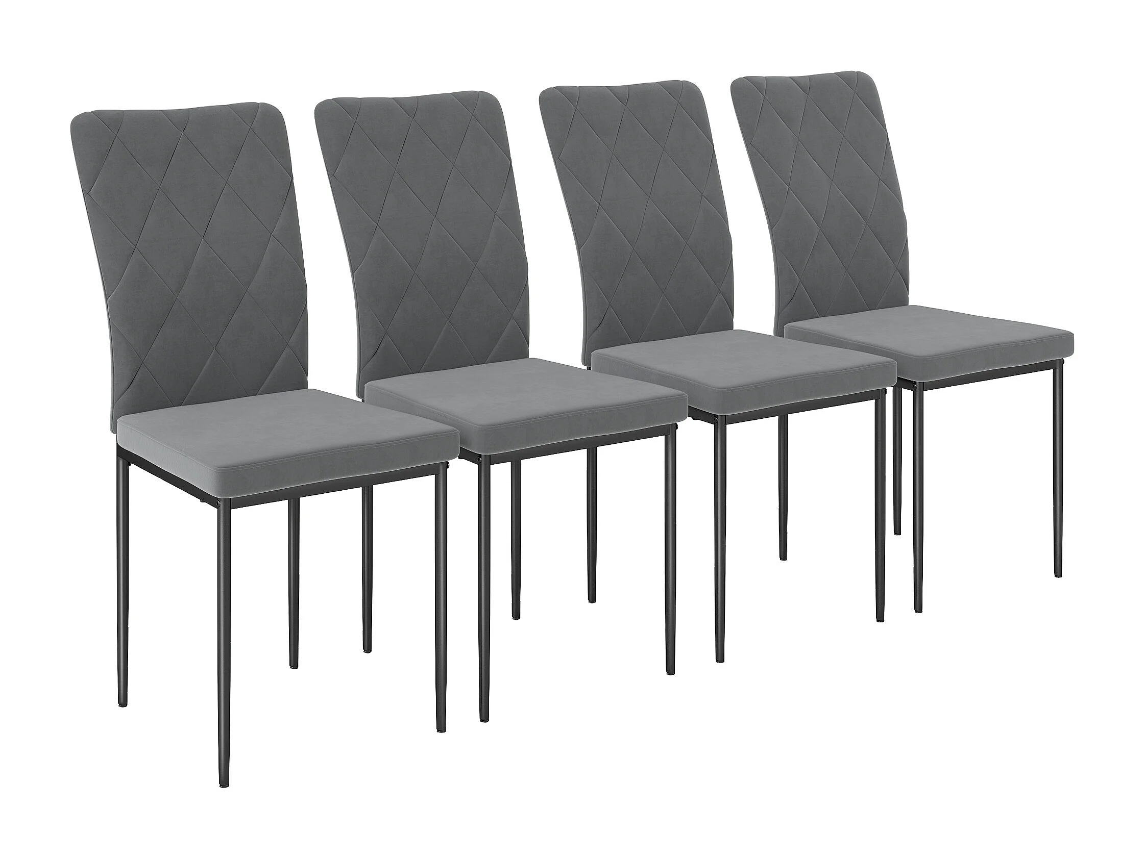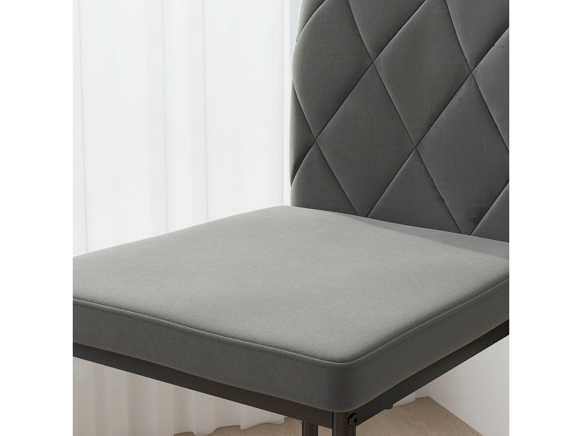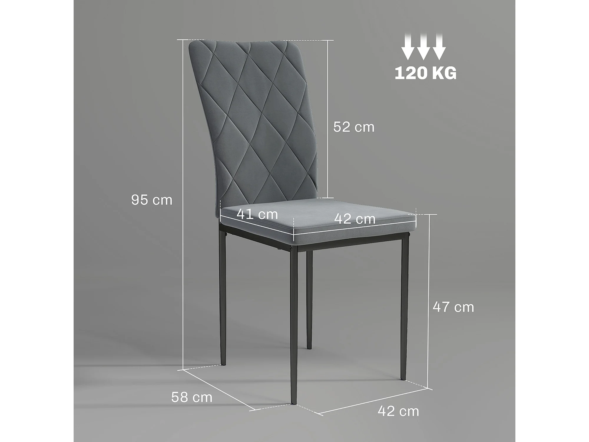 Ensemble de 4 chaises de salle à manger, chaises de cuisine rembourrées avec dossier, aspect velours, pieds en métal, gris foncé