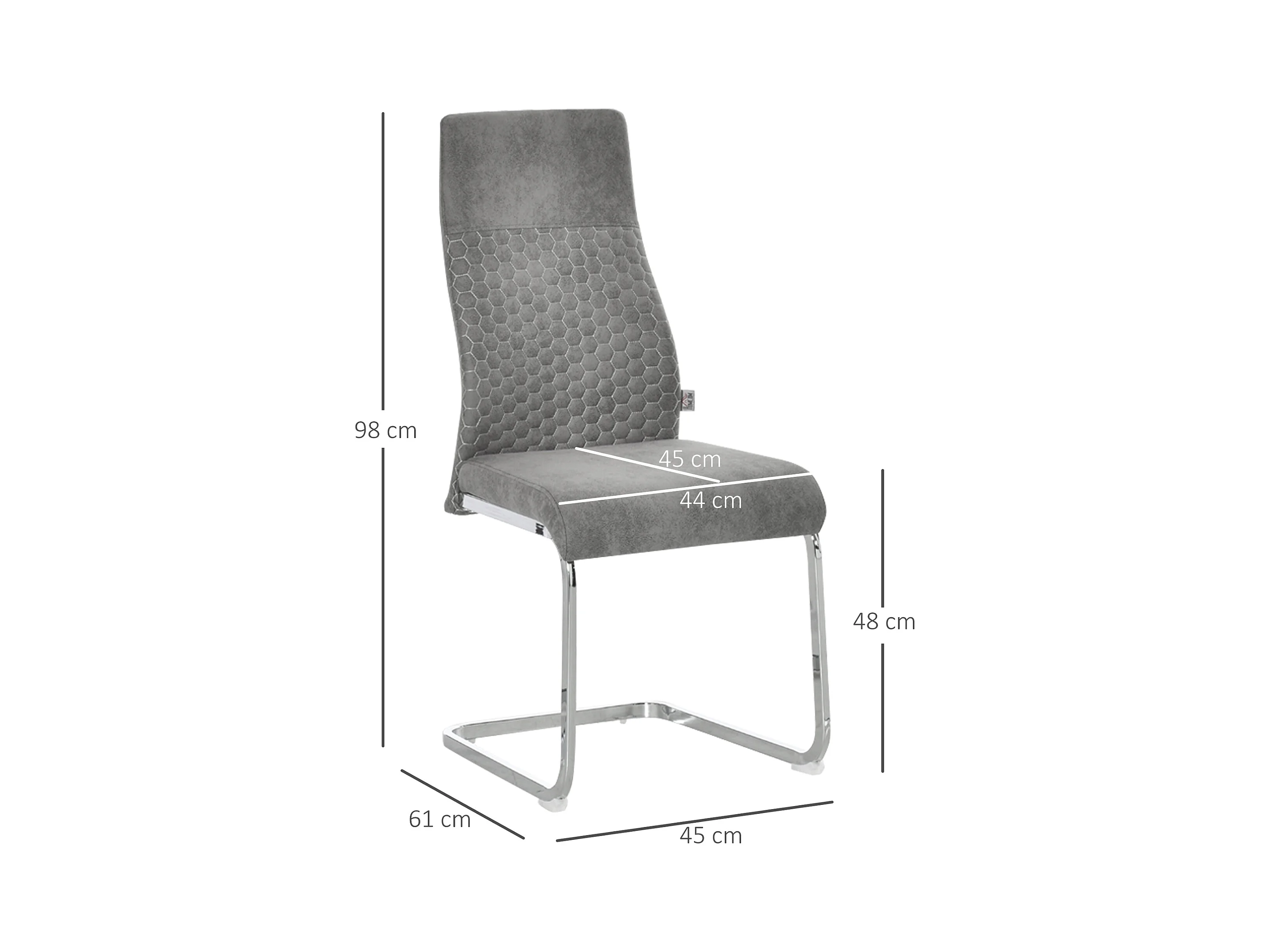 Ensemble de 4 chaises de salle à manger design, dossier incliné velours et structure métal, gris (45x61x98 cm)
